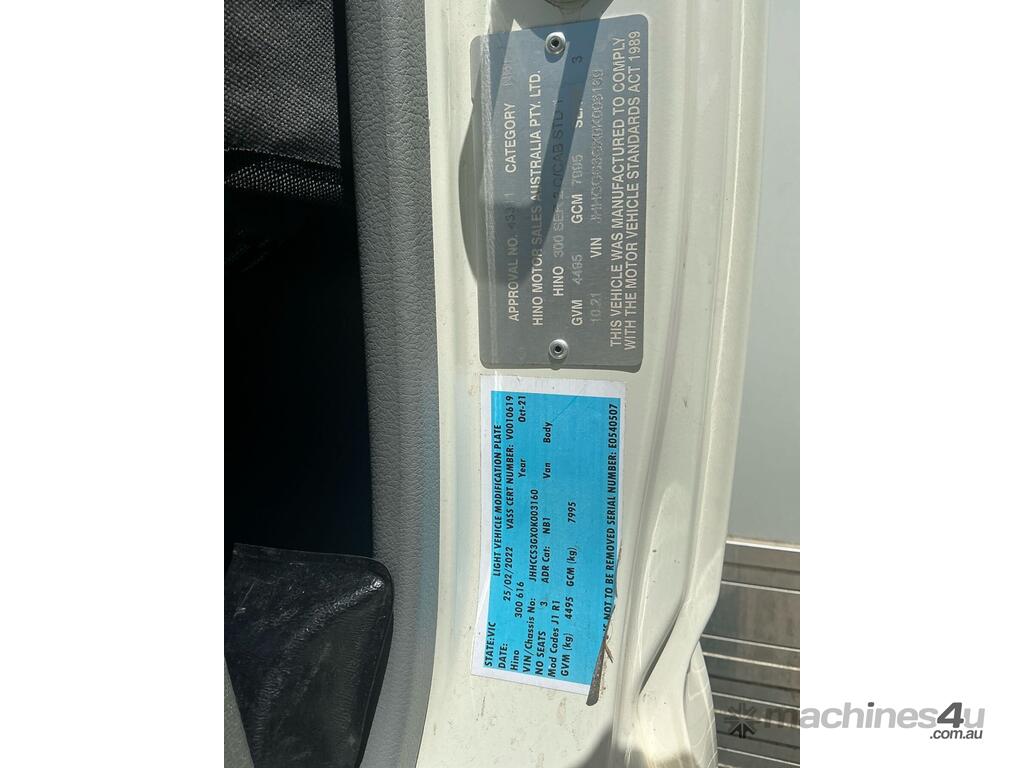 CP: 10/2021,Hino,300 616 ,Pantech,Automatic,Spring,N0H4,4 Cyl,Diesel,89301 (Kms. Showing on Odometer),Hourmeter not visible,Colour: White,Unregistered,VIN: JHHCCS3GX0K003160,Key No: 34,GVM: 4495,GCM: 7995,Sold with No Plates,Key No: 34