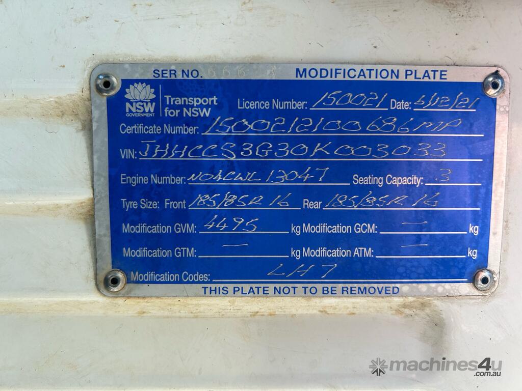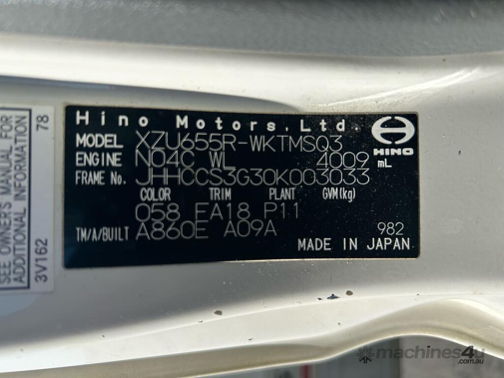CP: 10/2021,Hino,300 616 ,Refrigerated Pantech,Automatic,Spring,4 Cyl,Diesel,278306 (Kms. Showing on Odometer),Hourmeter not visible,Colour: White,Rego. No: NP(DC89WX), Unregistered NSW,VIN: JHHCCS3G30K003033,Key No: 85,GVM: 4495,GCM: 7995,Sold with No Plates,Key No: 85
