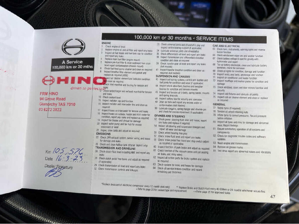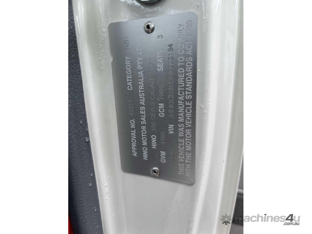 CP: 12/2021,Hino,300 616 ,Refrigerated Pantech,Automatic,Leaf Spring ,4 Cyl,Diesel Turbo,290638 (Kms. Showing on Odometer),8880 (Hrs. Showing on Hour meter),Colour: White,Rego. No: NP(K95KF), Unregistered TAS,VIN: JHHCCS3G20K003184,Length: 5.8 m,GVM: 4495,GCM: 7995,Sold with No Plates