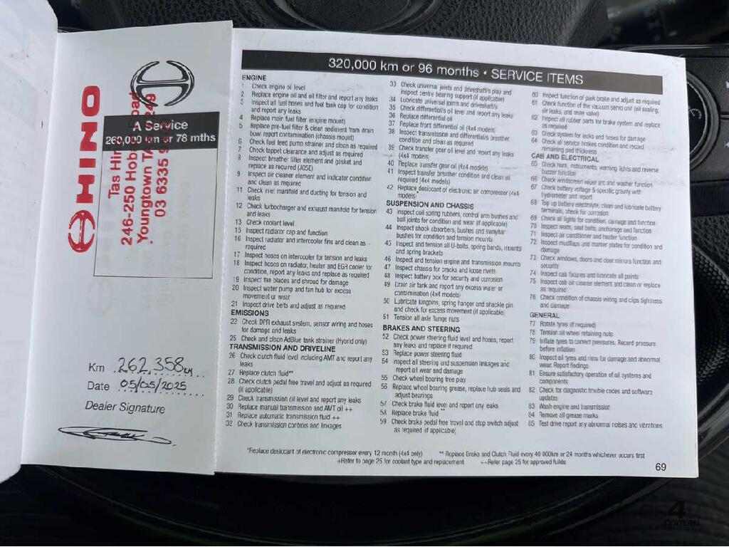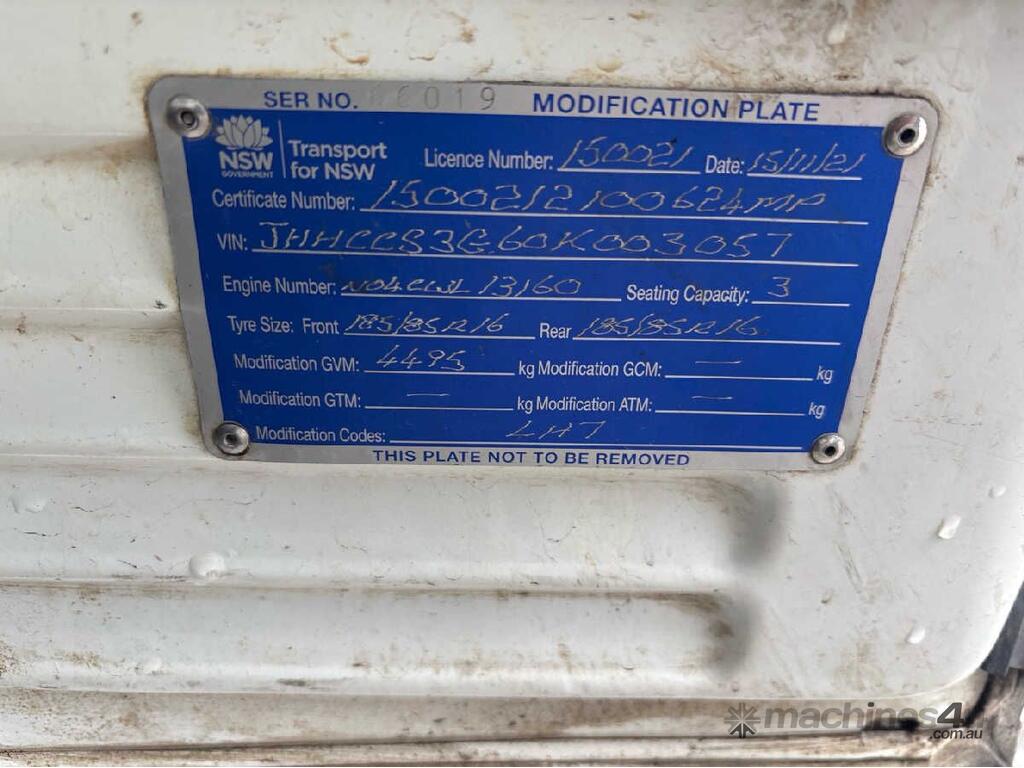 CP: 11/2021,Hino,300 616 ,Refrigerated Pantech,Automatic,Leaf Spring Suspension ,4 Cyl,Diesel Turbo,304364 (Kms. Showing on Odometer),8497 (Hrs. Showing on Hour meter),Colour: White,Rego. No: NP(K12BI), Unregistered TAS,VIN: JHHCCS3G60K003057,Length: 5965 m,GVM: 4495,GCM: 7995,Sold with No Plates