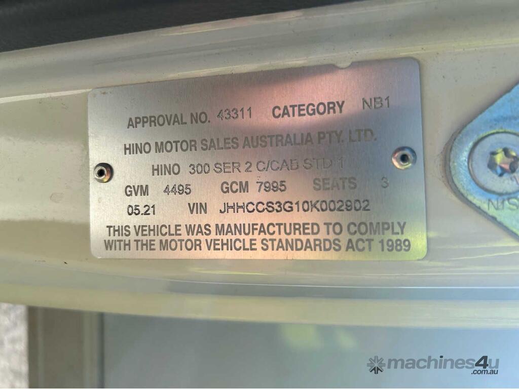 CP: 05/2021,Hino,300 616 ,Refrigerated Pantech,Automatic,Spring,4 Cyl,Diesel,250420 (Kms. Showing on Odometer),9836 (Hrs. Showing on Hour meter),Colour: White,Rego. No: 772JS2 QLD,VIN: JHHCCS3G10K002902,Key No: 393,GVM: 4495,GCM: 7995,Sold with No Plates,Key No: 393