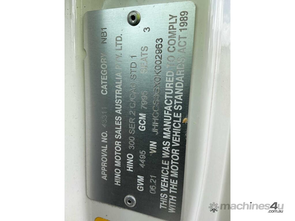 CP: 06/2021,Hino,300 616 ,Refrigerated Pantech,Automatic,Spring,Engine #: N04CWL12793,N04C,4 Cyl,Diesel Turbo,111122 (Kms. Showing on Odometer),8830 (Hrs. Showing on Hour meter),Colour: White,Rego. No: NP(DB18XC), Unregistered NSW,VIN: JHHCCS3GX0K002963,Key No: 495S,Length: 5.8 m,GVM: 4495,GCM: 7995,Sold with No Plates,Key No: 495S