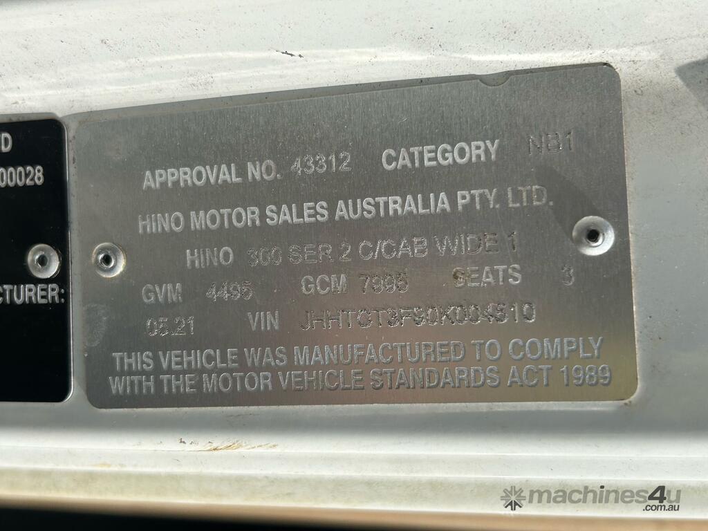CP: 05/2021,Hino,300 617,Table Top,Manual,Spring,4 Cyl,76907 (Kms. Showing on Odometer),Hourmeter not visible,Rego. No: NP(906BZ8), Unregistered QLD,VIN: JHHTCT3F90K004510,Key No: 31,GVM: 4495,GCM: 7995,Sold with No Plates,Key No: 31