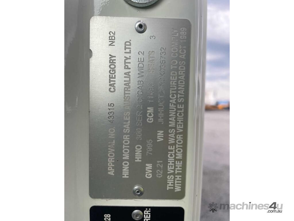 CP: 02/2021,Hino,300 917,Tipper Day Cab,Manual,Spring,Engine #: N04CWM1D557,4 Cyl,Diesel Turbo,6 Gears,37191 (Kms. Showing on Odometer),950 (Hrs. Showing on Hour meter),Colour: White,Rego. No: XN75VG NAT,Rego expiry: 05/04/2026,VIN: JHHUCT2F30K036732,Key No: 600S,Length: 5.9 m,GVM: 7995,GCM: 11495,Sold with No Plates,Key No: 600S