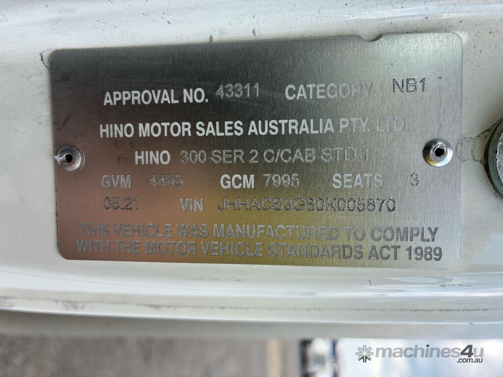 CP: 05/2021,Hino,300 series,Table Top,Automatic,Spring,4 Cyl,Diesel,152939 (Kms. Showing on Odometer),Hourmeter not visible,Rego. No: 113BP3 QLD,VIN: JHHACS3G80K005870,Key No: 126,GVM: 4495,GCM: 7995,Sold with No Plates,Key No: 126