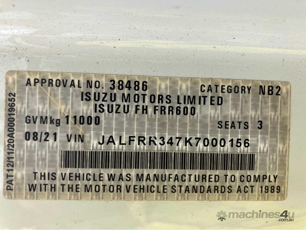 CP: 08/2021,Isuzu,FRR 110-260,Tilt Tray,Automatic,Spring,4 Cyl,Diesel,Turbo,671592 (Kms. Showing on Odometer),9392 (Hrs. Showing on Hour meter),Colour: White,Rego. No: V4N70W NSW,VIN: JALFRR347K7000156,Length: 10.1 m,GVM: 11000,GCM: 20000,Sold with No Plates,WOVR Status: WOVR N/A,Incident Type: Impact