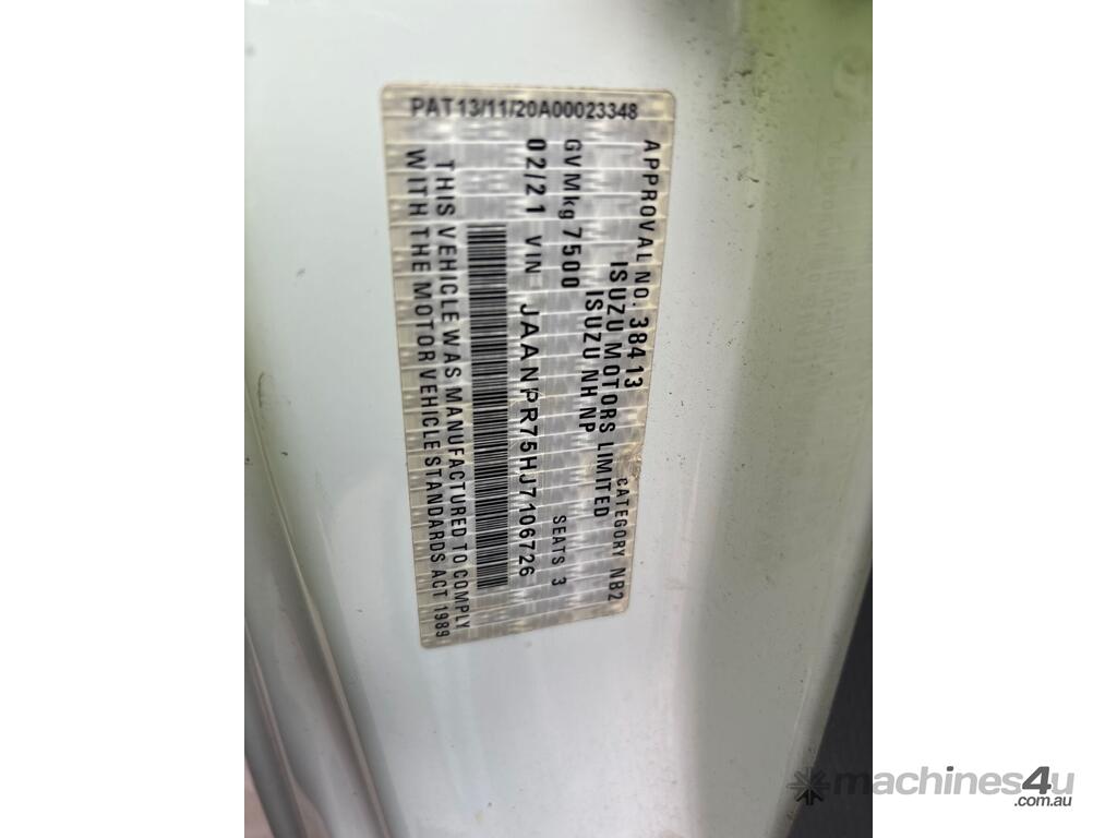 CP: 02/2021,Isuzu,NPR 75-190,Refrigerated Pantech,Automatic,4 Cyl,Diesel,Odometer not visible,Hourmeter not visible,Colour: White,Rego. No: NP(XV85TO), Unregistered NAT,VIN: JAANPR75HJ7106726,GVM: 7500,GCM: 11000,Sold with No Plates,WOVR Status: WOVR N/A,Incident Type: Impact
