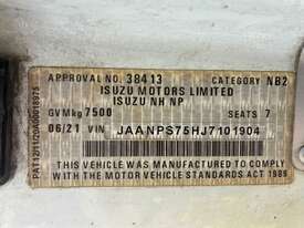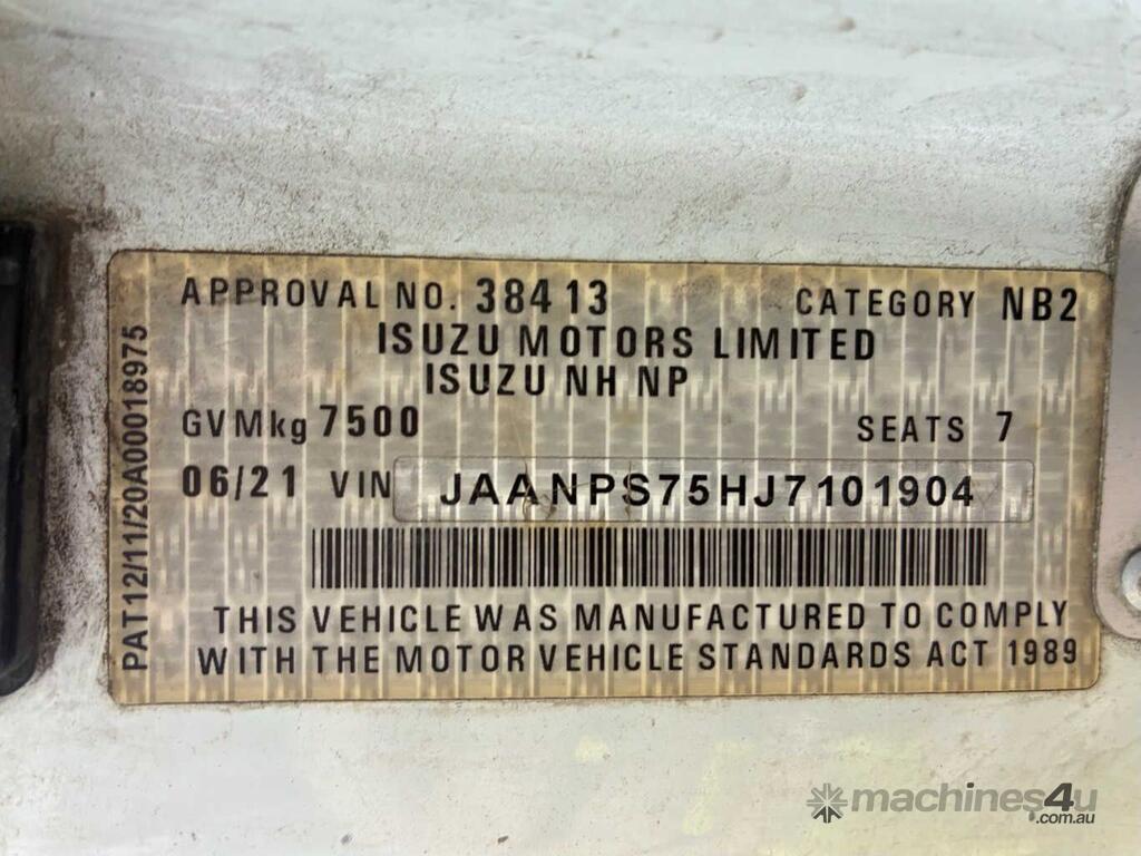 CP: 06/2021,Isuzu,NPS 75-155,Cab Chassis Crew Cab,Automatic,Spring,4 Cyl,Diesel,44669 (Kms. Showing on Odometer),3666 (Hrs. Showing on Hour meter),Colour: White,Unregistered,VIN: JAANPS75HJ7101904,Key No: 140,GVM: 7500,GCM: 11000,Sold with No Plates,Key No: 140