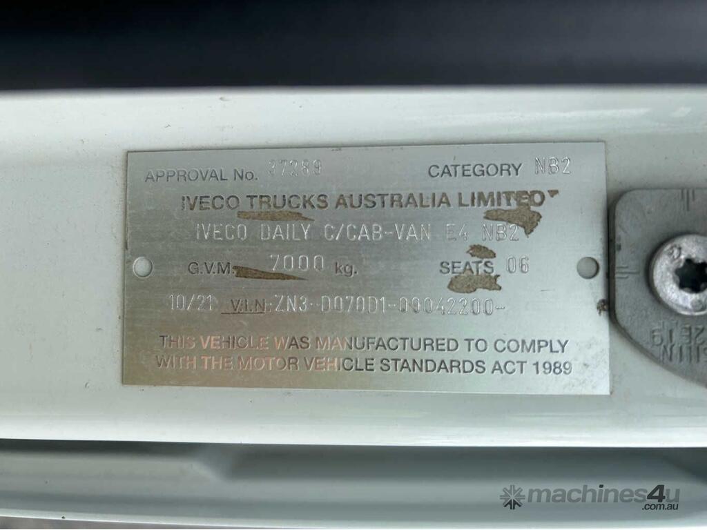 CP: 10/2021,Iveco,70-180,Table Top,Automatic,Spring,Engine #: 3833170,Diesel,87125 (Kms. Showing on Odometer),3590 (Hrs. Showing on Hour meter),Colour: White,Rego. No: NP(XQ51UK), Unregistered NAT,VIN: ZN3D070D,Key No: 231,Length: 6.2 M,GVM: 7000,Sold with No Plates,Key No: 231