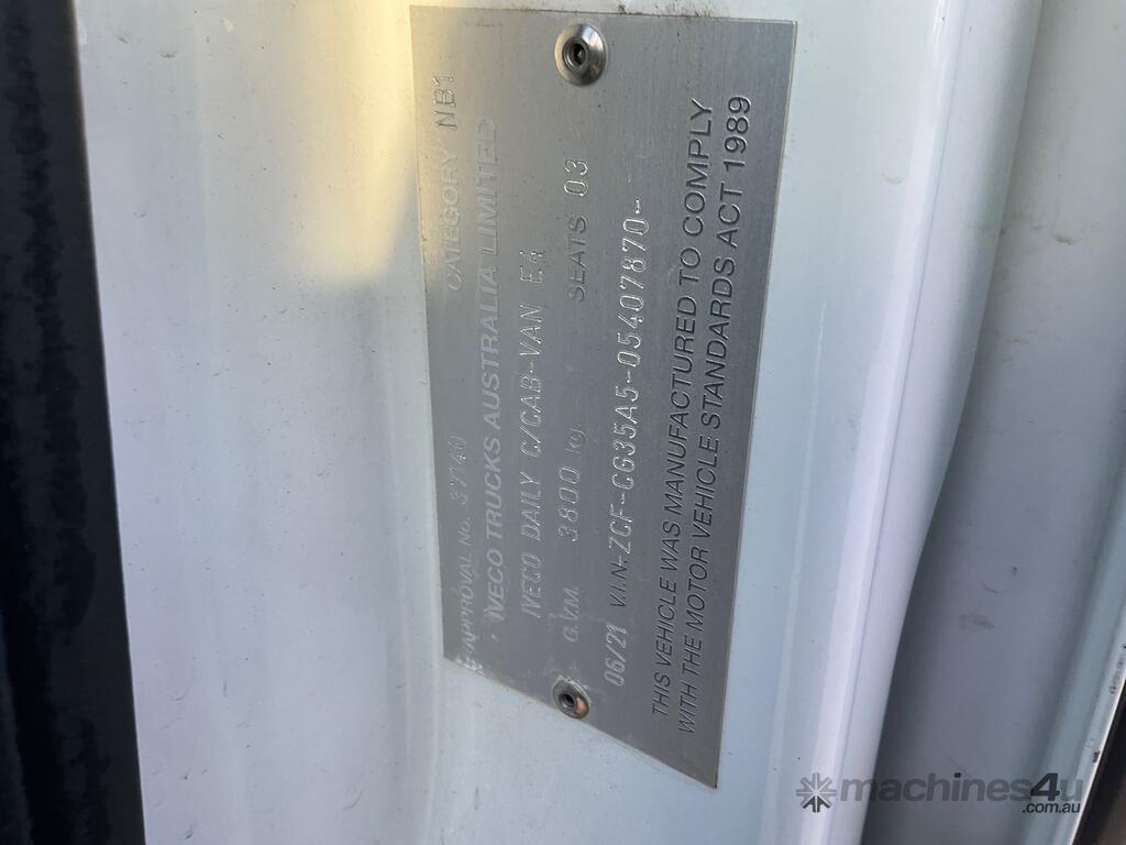 CP: 06/2021,Iveco,Daily,35S14V,Van,Automatic,2.3 Ltr,4 Cyl,Diesel,8 Gears,68618 (Kms. Showing on Odometer),Hourmeter not visible,Colour: White,Rego. No: NP(1TU2YN), Unregistered VIC,VIN: ZCFCG35A,Sold with No Plates