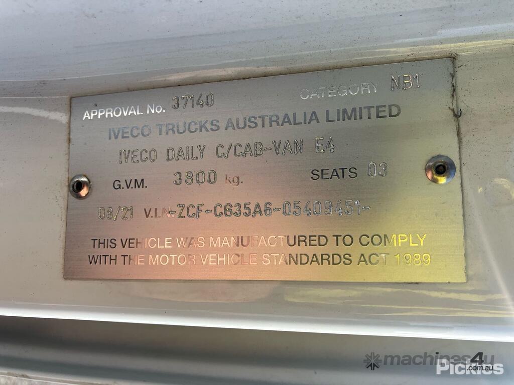 CP: 08/2021,Iveco,Daily,Van,Automatic,Spring,Diesel,69252 (Kms. Showing on Odometer),Colour: White,Rego. No: 10F9FT VIC,VIN: ZCFCG35A,Key No: 320,GVM: 3800,Sold with No Plates,Key No: 320