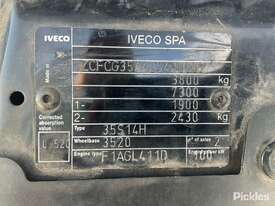 CP: 08/2021,Iveco,Daily,Van,Sports Automatic,Spring,F1AGL411D,4 Cyl,Diesel Turbo,150564 (Kms. Showing on Odometer),Colour: White,Unregistered,VIN: ZCFCG35A,Key No: 334,GVM: 3800,GCM: 7300,Sold with No Plates,Key No: 334