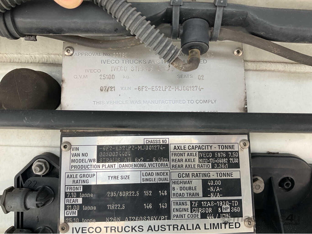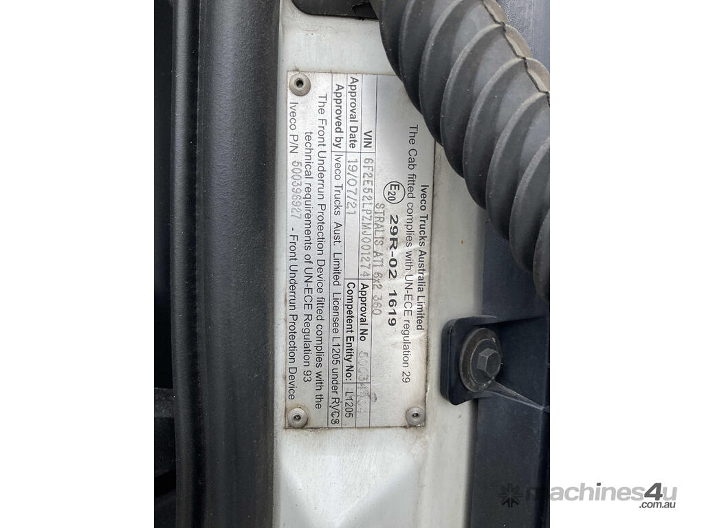 CP: 07/2021,Iveco,Stralis 360,Table Top,Automatic,Airbag,Diesel,150374 (Kms. Showing on Odometer),Hourmeter not visible,Colour: White,Rego. No: NP(XO44EI), Unregistered NSW,VIN: 6F2E52LPZMJ001274,GVM: 25100,GCM: 40000,Sold with No Plates,WOVR Status: WOVR N/A,Incident Type: Malicious