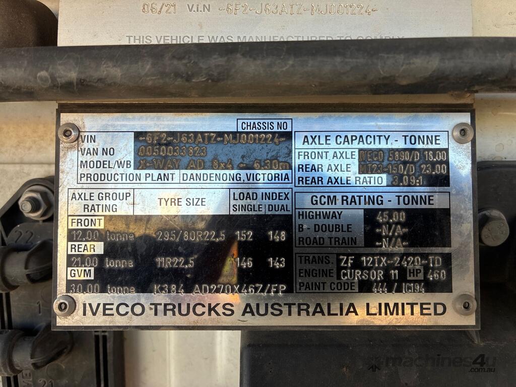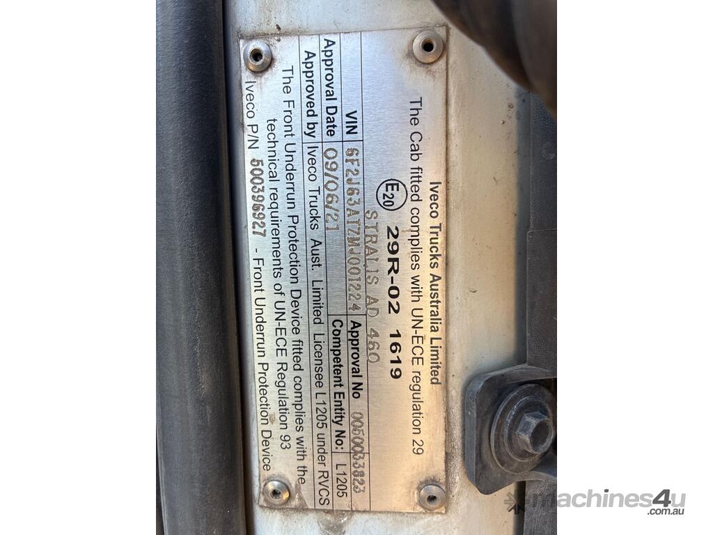 CP: CIRCA 2021,Iveco,Stralis 460,Hook Bin Truck,Automatic,Iveco,Diesel,161010 (Kms. Showing on Odometer),Hourmeter not visible,Rego. No: XQ16TP,VIN: 6F2J63ATZMJ001224,GVM: 30000,GCM: 45000,Sold with No Plates