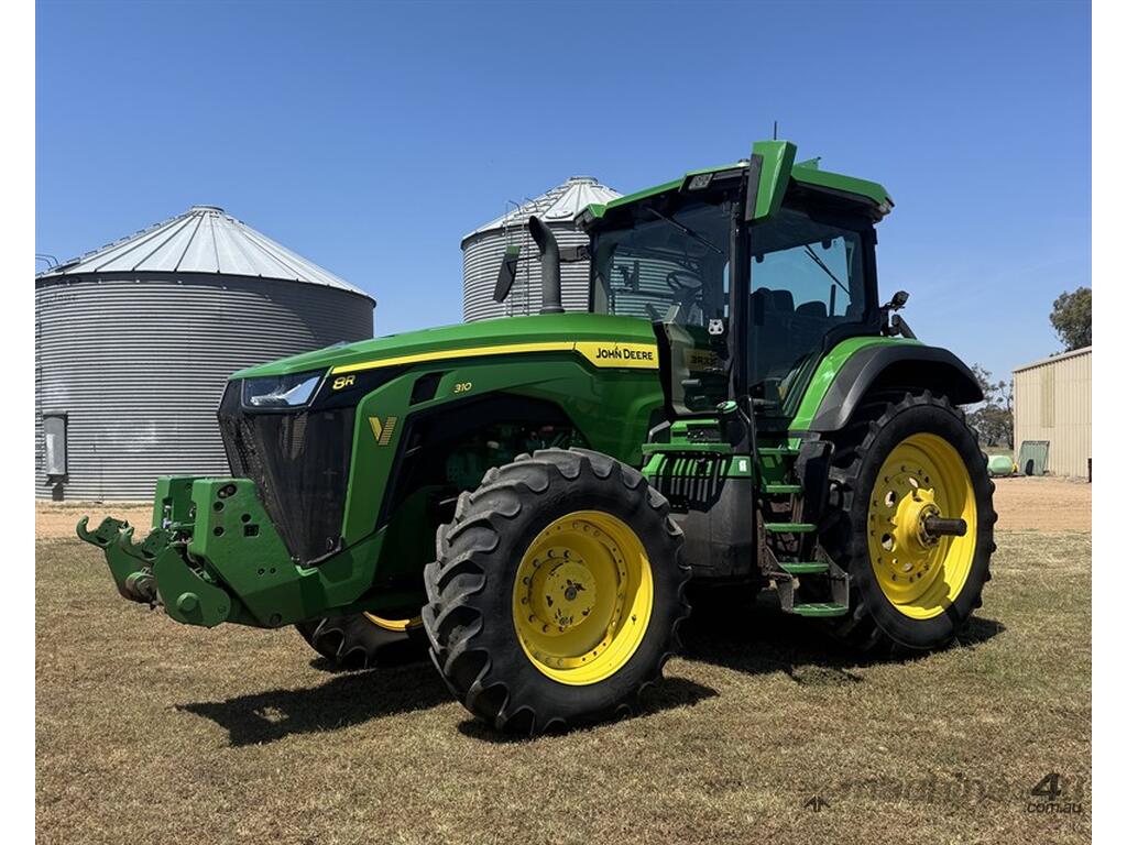 2021 John Deere 8R 310 FWA Tractor. 2m centers. Tractor reading 4419 engine hours at time of photos, may have some more come auction time. 9.0L John Deere PowerTech motor, 310hp. 3PL with quick hitch, PTO, front hitch. RTK guidence, second screen included. Has been used for paddock bale removal. Located west of Moree NSW, available at MRE Auctions online sale. Chassis No RWMDN6N101748 4419.