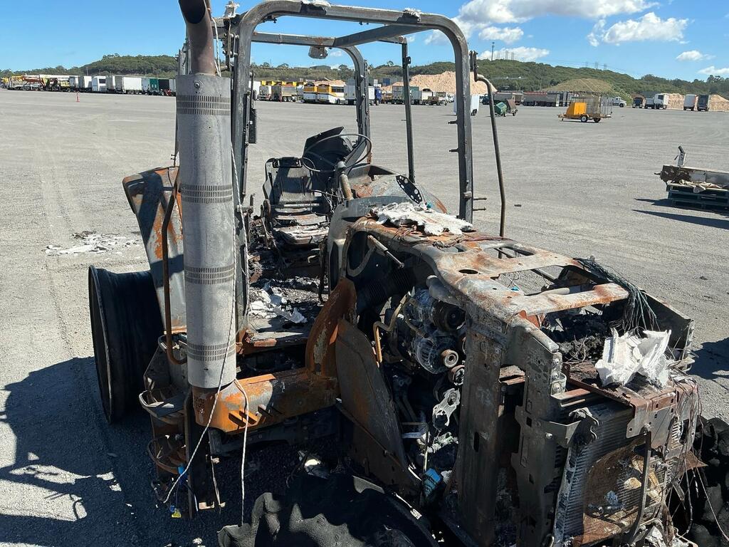 CP: CIRCA 2021,John Deere,6110,Tractor,Odometer not visible,Hourmeter not visible,Colour: Burnt,Unregistered,Serial No: 1L06110MVMX103158,Sold with No Plates,WOVR Status: WOVR N/A,Incident Type: Fire