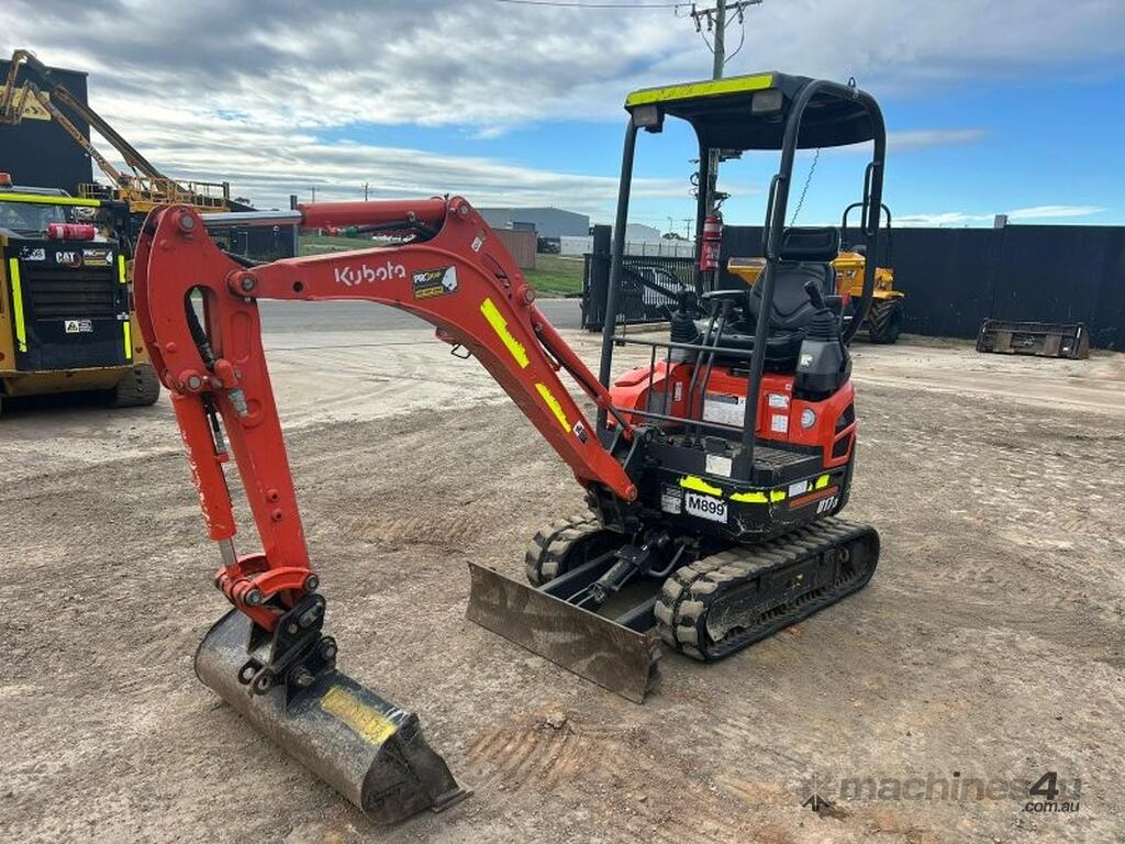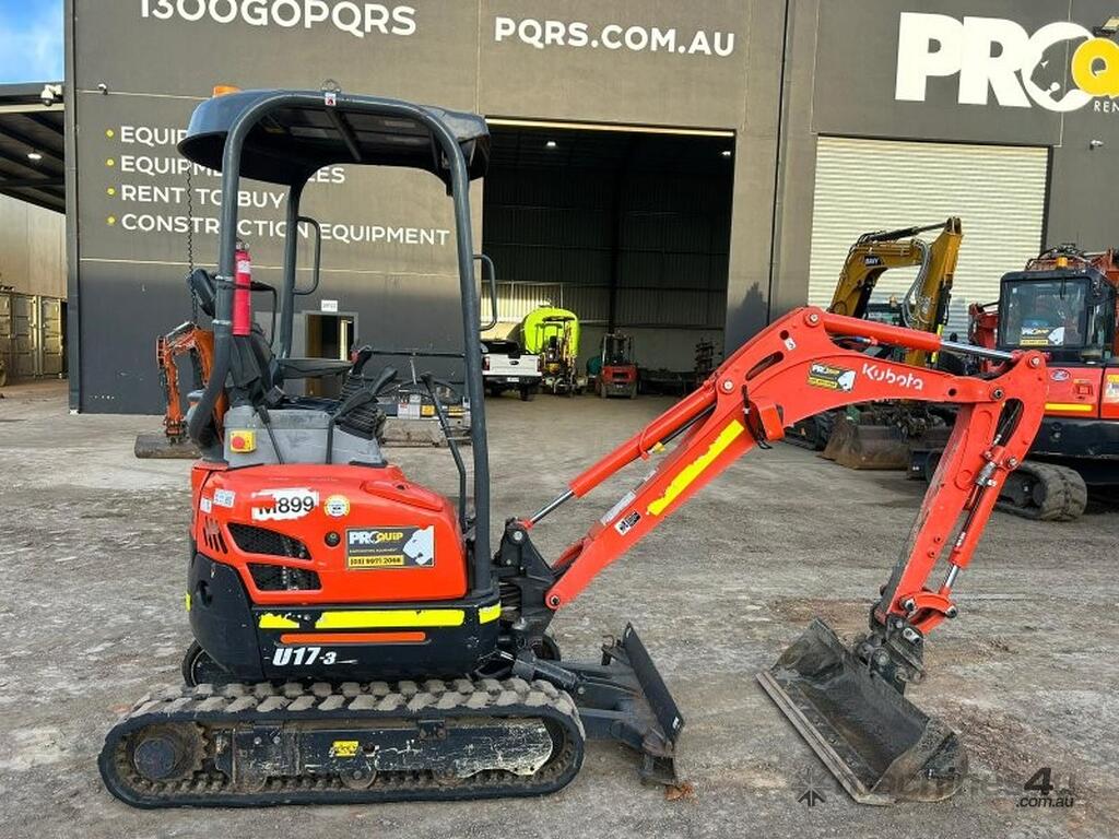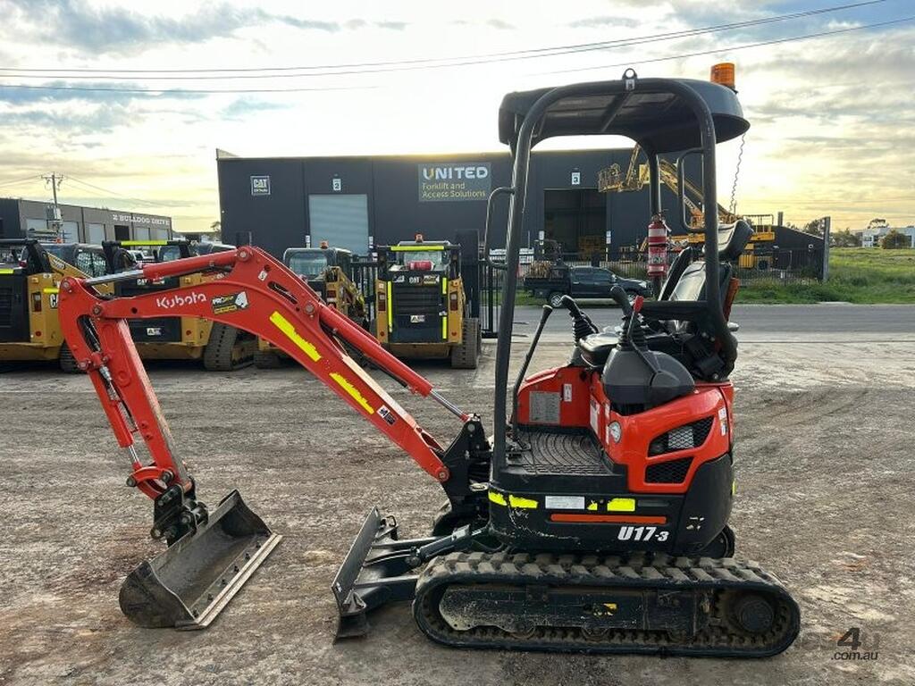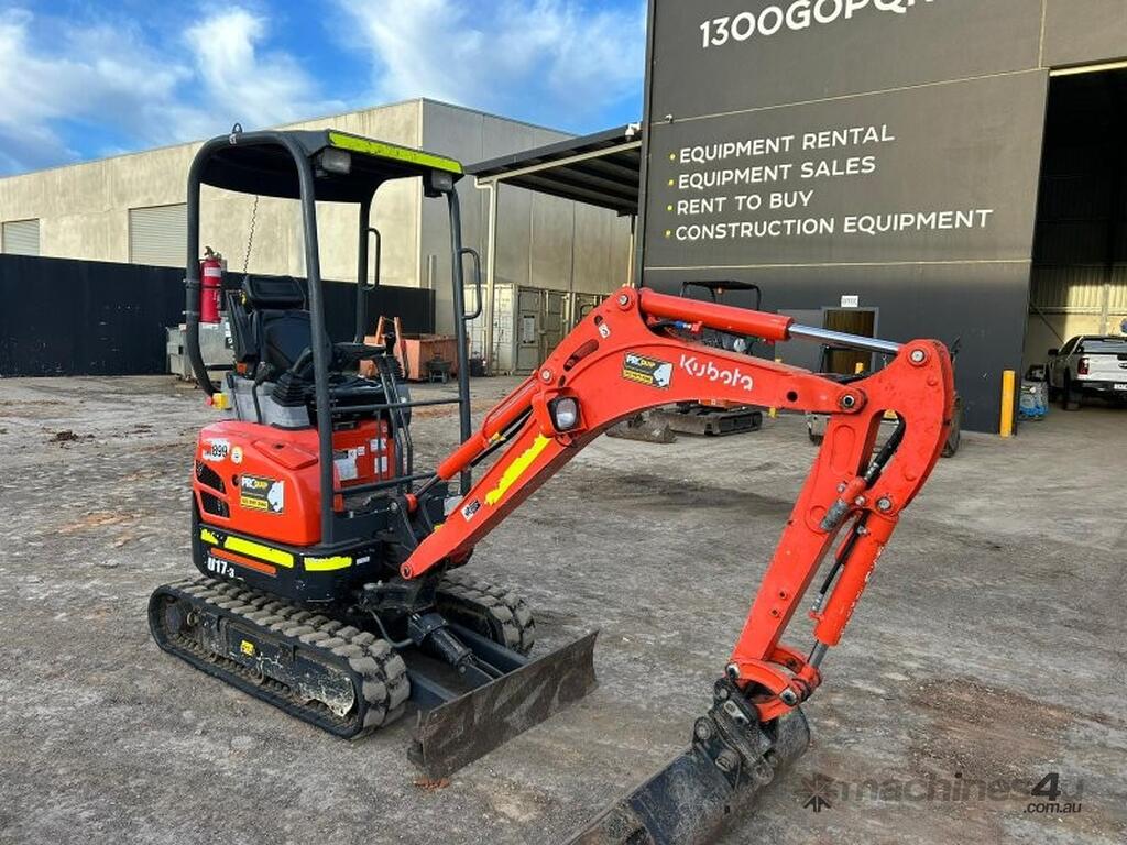 USED 2021 KUBOTA U17-3 (M899) 1.7T ZERO TURN MINI-EXCAVATOR WITH LOW 750 HRS. COMES WITH HALF HITCH, MUD BUCKET, 2 x DIG BUCKETS, HAMMER AND AUGER HYDRAULIC PIPING, DOZER BLADE, EXPANDABLE UNDERCARRIAGE WITH GOOD RUBBER TRACKS, WORK LIGHTS, FIRE EXTINGUISHER, ONE OWNER, FULL SERVICE HISTORY, FULLY SERVICED AND READY FOR WORK. AUSTRALIAN DELIVERED NOVEMBER 2021, COMES WITH 3-MONTH DRIVETRAIN WARRANTY.