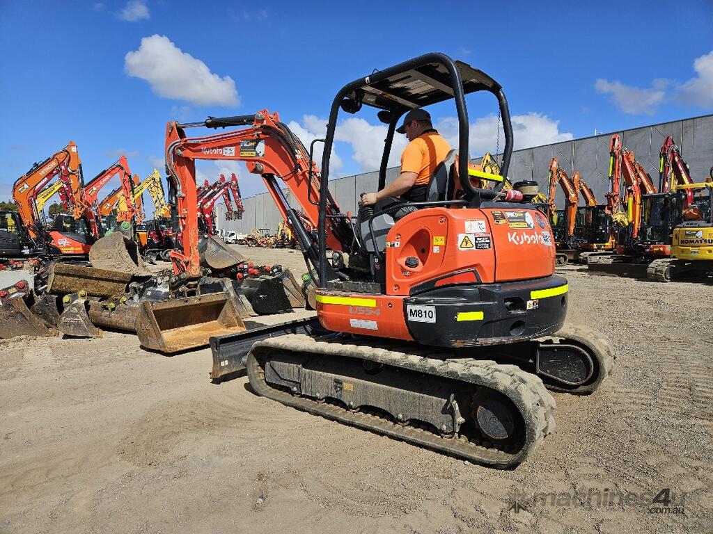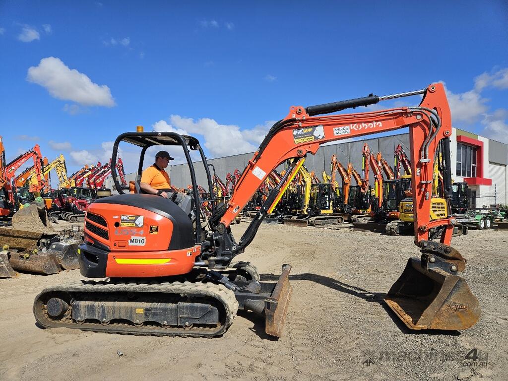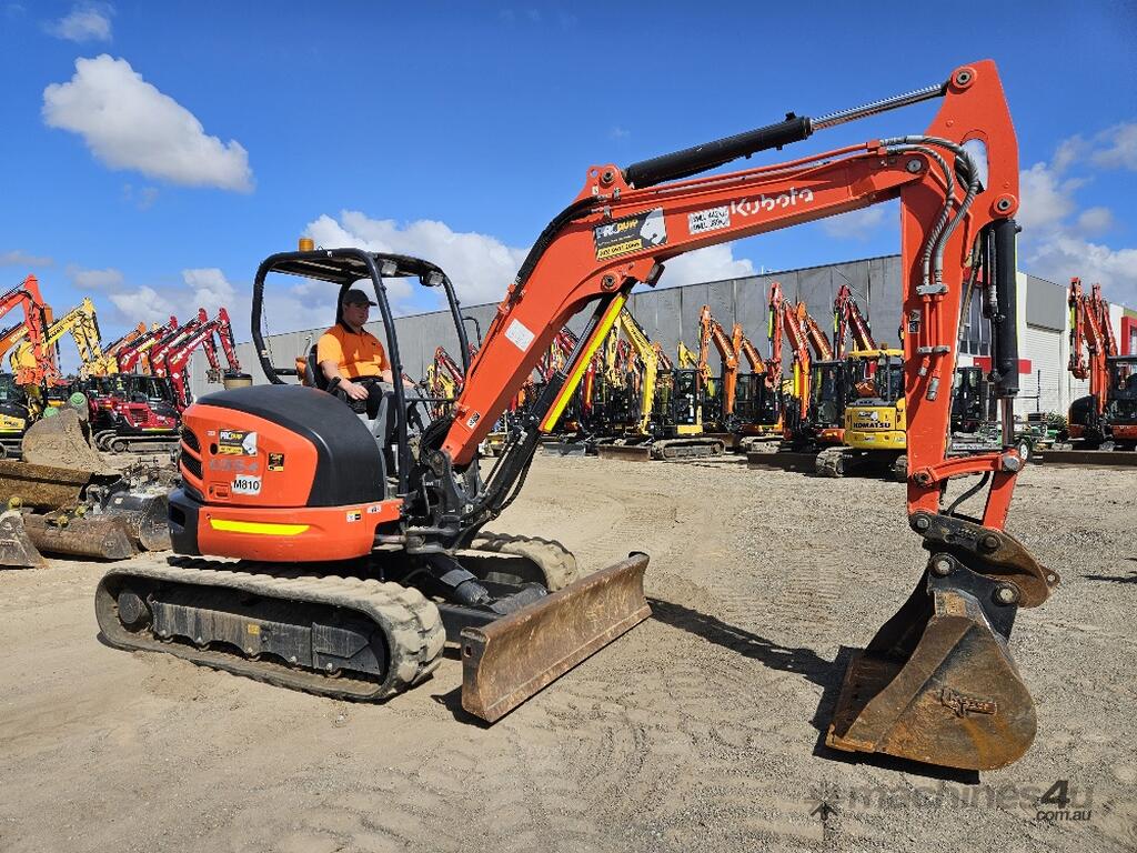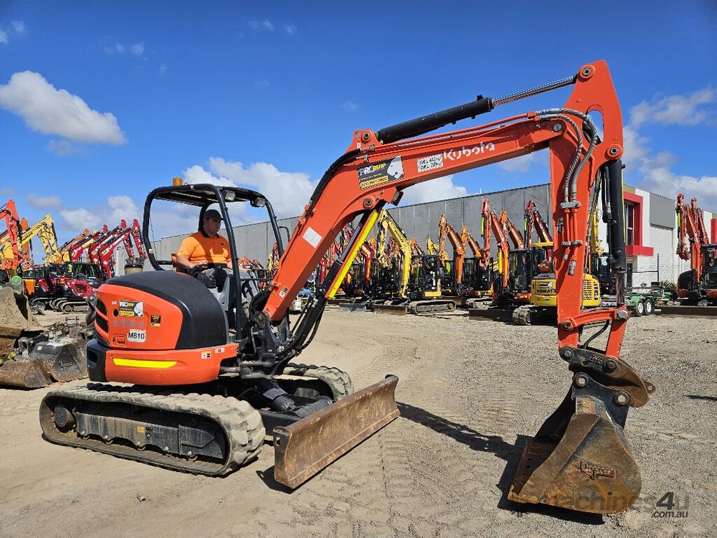 2021 KUBOTA U.5T ZERO SWING EXCAVATOR (M810) WITH ROPS CANOPY, LOW 580 HRS. HYDRAULIC SAFETY HITCH, DOZER BLADE, DUAL HAMMER AND AUGER PIPING, RUBBER TRACKS, 2 SPEED, 300, 450 & 600MM DIG BUCKETS, MUD BUCKET WITH BOE, FULL CIVIL SPEC WITH E-STOPS, BATTERY ISOLATOR, SAFETY BEACON AND TRAVEL ALARM, RISK ASSESSMENT, FULL SERVICE HISTORY, AUSTRALIAN DELIVERED JAN 2022, ONE OWNER, VERY TIDY MACHINE, READY FOR WORK. 3-MONTH DRIVETRAIN WARRANTY.