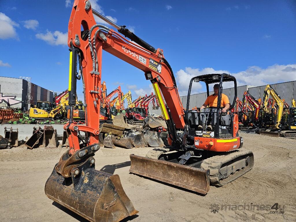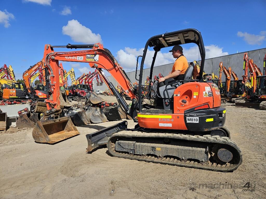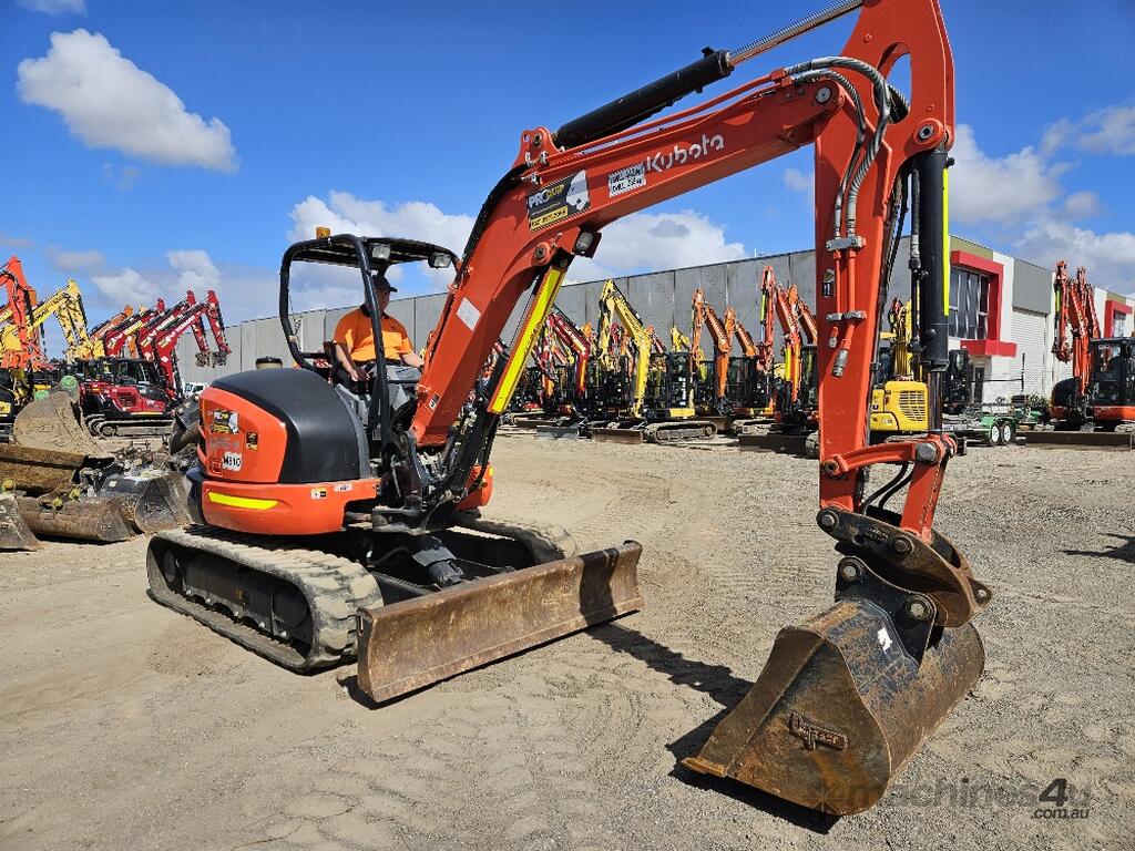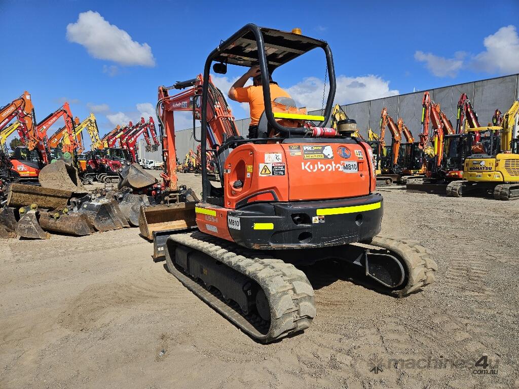 2021 KUBOTA U.5T ZERO SWING EXCAVATOR (M810) WITH ROPS CANOPY, LOW 580 HRS. HYDRAULIC SAFETY HITCH, DOZER BLADE, DUAL HAMMER AND AUGER PIPING, RUBBER TRACKS, 2 SPEED, 300, 450 & 600MM DIG BUCKETS, MUD BUCKET WITH BOE, FULL CIVIL SPEC WITH E-STOPS, BATTERY ISOLATOR, SAFETY BEACON AND TRAVEL ALARM, RISK ASSESSMENT, FULL SERVICE HISTORY, AUSTRALIAN DELIVERED JAN 2022, ONE OWNER, VERY TIDY MACHINE, READY FOR WORK. 3-MONTH DRIVETRAIN WARRANTY.