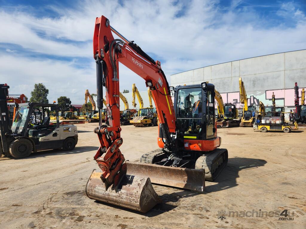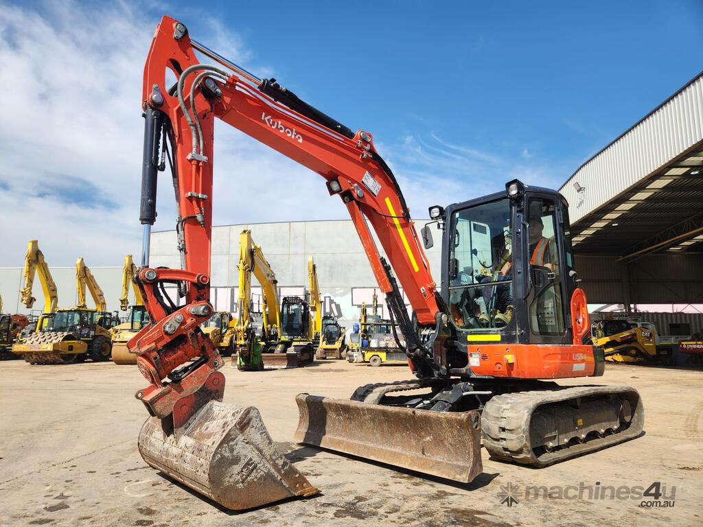 2021 KUBOTA U.5T ZERO SWING EXCAVATOR WITH FULL A/C CABIN, LOW 1200 HRS. HYDRAULIC TILTING SAFETY HITCH, HYDRAULIC ANGLE DOZER BLADE, DUAL HAMMER AND AUGER PIPING, RUBBER TRACKS, 2 SPEED, 3 X DIG BUCKETS, MUD BUCKET WITH BOE, FULL CIVIL SPEC WITH UHF RADIO, REAR VIEW CAMERA, E-STOPS, BATTERY ISOLATOR, SAFETY BEACON AND TRAVEL ALARM, RISK ASSESSMENT, FULL SERVICE HISTORY, AUSTRALIAN DELIVERED MAY 2021, ONE OWNER, VERY TIDY MACHINE, READY FOR WORK. 3-MONTH DRIVETRAIN WARRANTY.