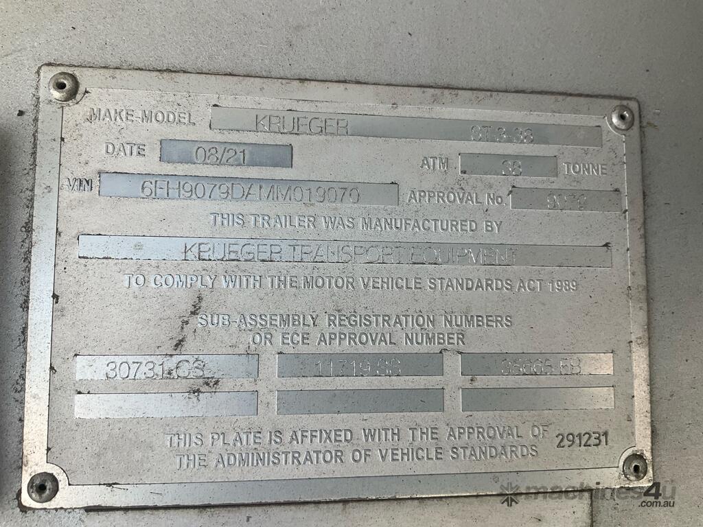 CP: 08/2021,Krueger,ST-3-38,Tri Axle Flat Top Curtainside B Trailer,Hubometer not visible,Colour: Blue,Rego. No: NP(YV47LU), Unregistered VIC,VIN: 6FH9079DAMM019070,Sold with No Plates