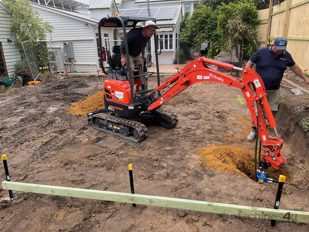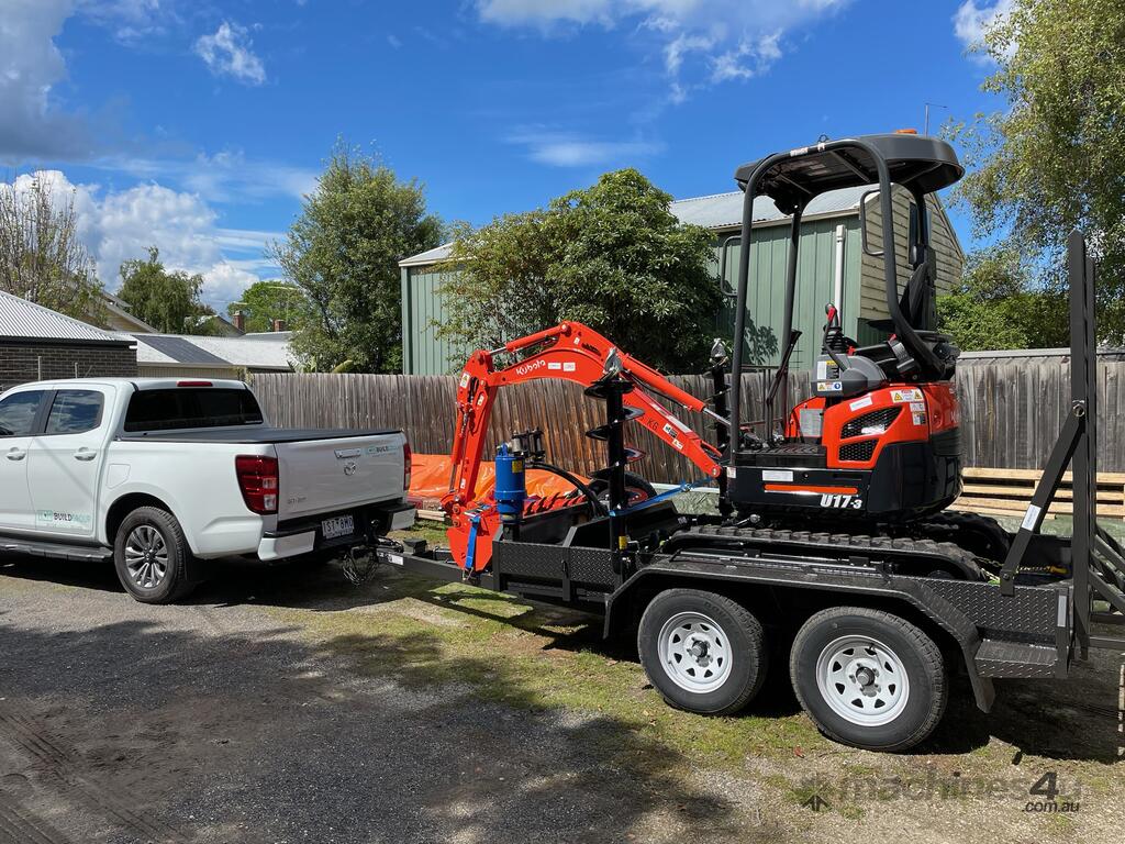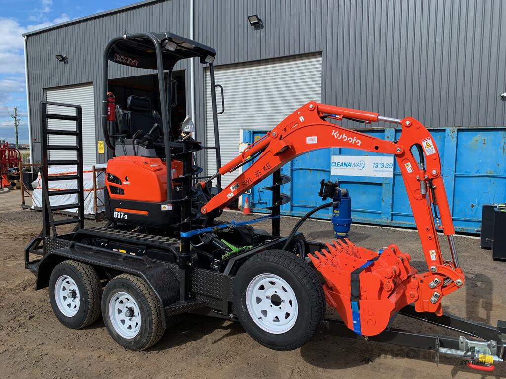 Kubota 2021 U17-3 Mini Excavator, fitted with ROPS / FOPS, adjustable width rubber tracks, work lights and travel alarm.