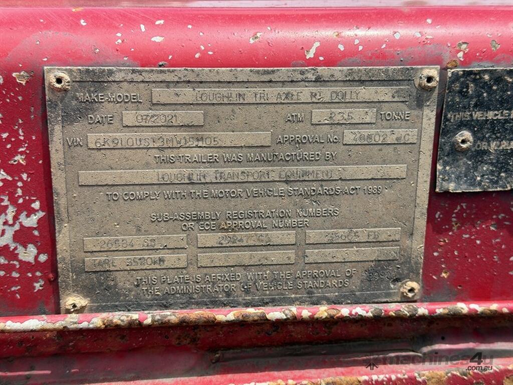 2021 LOUGHLIN TRI AXLE RT DOLLY DOLLY, VIN: 6K9L0UST3MW151105, NO REGISTRATION, NO COI. LOCATION: HALFERTY STREET, EMERALD, QLD 4720. INSPECTIONS & COLLECTIONS: MONDAY TO FRIDAY, 8AM TO 4PM. ENQUIRIES: CAMERON BENSLEY ON OR CAMERONEMERALDAUCTIONCENTRE