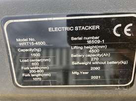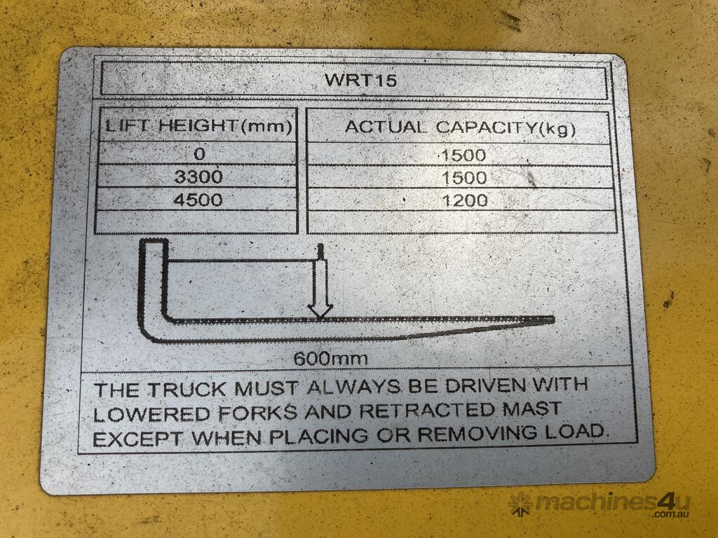 CP: CIRCA 2021,Liftsmart,WRT15,Walk Behind Electric Forklift,Electric,Odometer not visible,556 (Hrs. Showing on Hour meter),Colour: Yellow,Rego. No: NP(16509), Unregistered NSW,Serial No: 16509-1,Sold with No Plates,Key No: Tied On