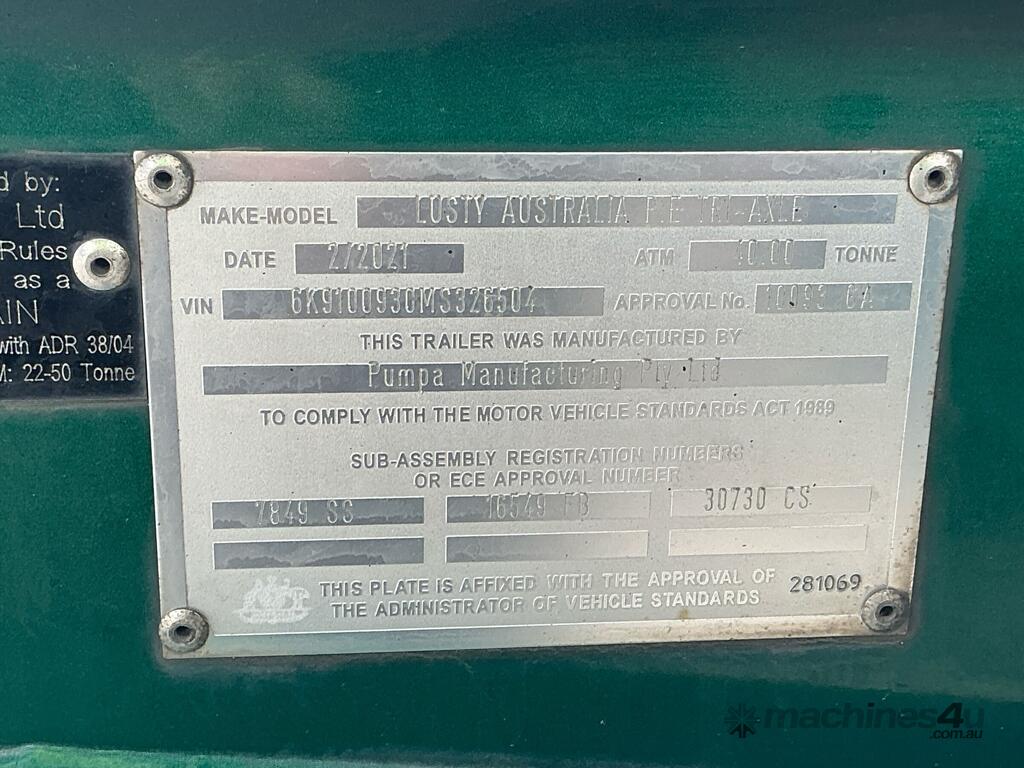 CP: 02/2021,Lusty,PE Triaxle,Tri Axle Skel Trailer,Hubometer not visible,Colour: Green,Rego. No: NP(YV25MO), Unregistered NAT,VIN: 6K9100930MS326504,Sold with No Plates,WOVR Status: WOVR N/A,Incident Type: Fire