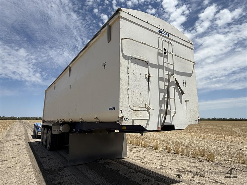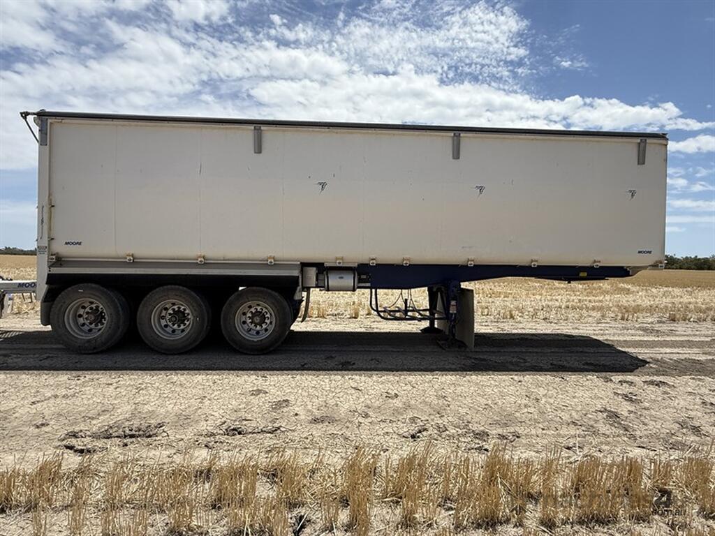 2021 MOORE TOA TIPPER. VIN 6V9LMTSMTMP002096. Hendrickson running gear. Air CTI. Road train lead. Toolbox. Water tank. 10 stud all of rims. Right weigh digital scales. 9.7 metres long x 2.1 metres high. Trailer is currently registered and is a repaired, repairable write off. Located Walgett, NSW.