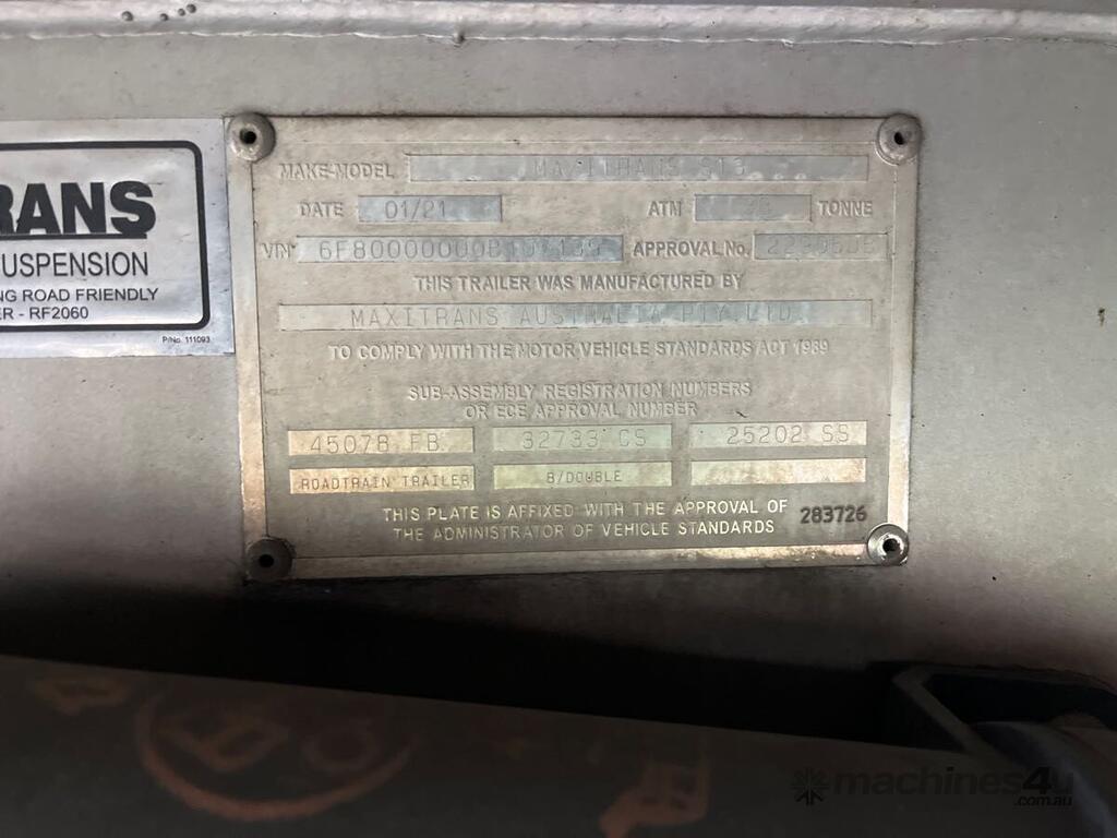 CP: 01/2021,Maxitrans,ST3,Tri Axle Drop Deck Curtainside A Trailer,280050 (Kms. Showing on Hubometer),Colour: Blue,Rego. No: NP(YS76CM), Unregistered NAT,VIN: 6F80000000B107139,Sold with No Plates
