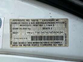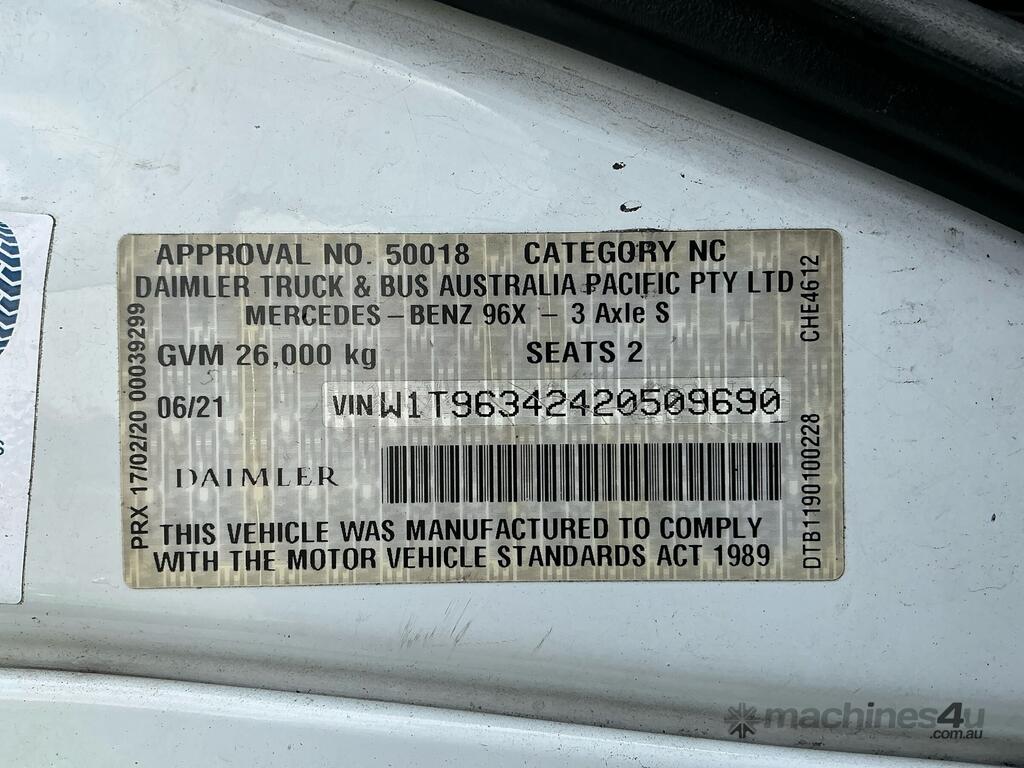 CP: 06/2021,Mercedes Benz,Actros 2653,Prime Mover,Automatic,Airbag,6 Cyl,Diesel,1087596 (Kms. Showing on Odometer),Hourmeter not visible,Colour: White,Unregistered,VIN: W1T9690,Key No: 85,GVM: 26000,GCM: 70000,Sold with No Plates,Key No: 85