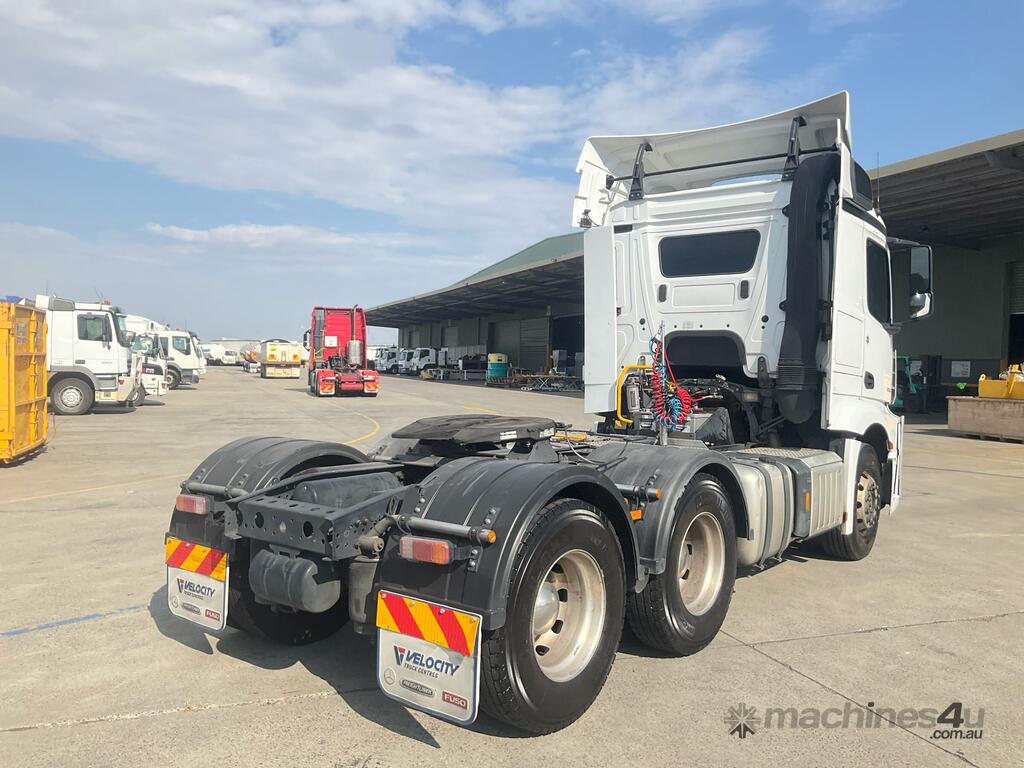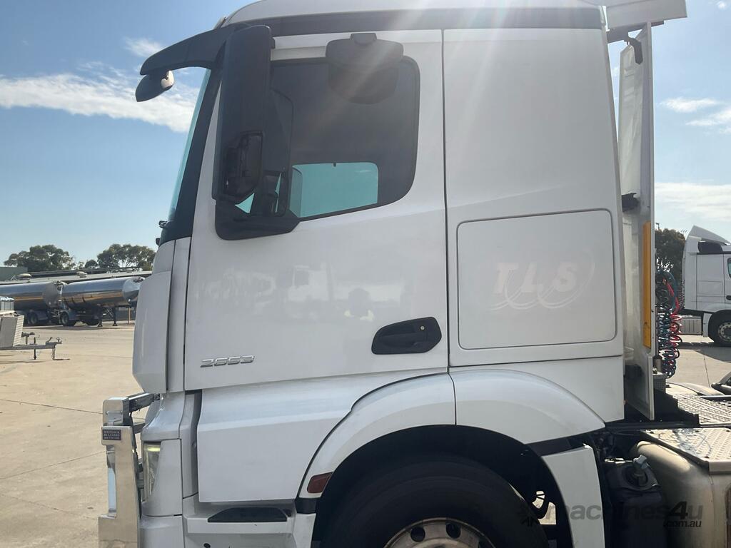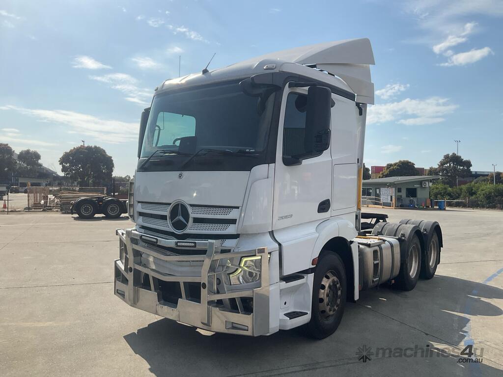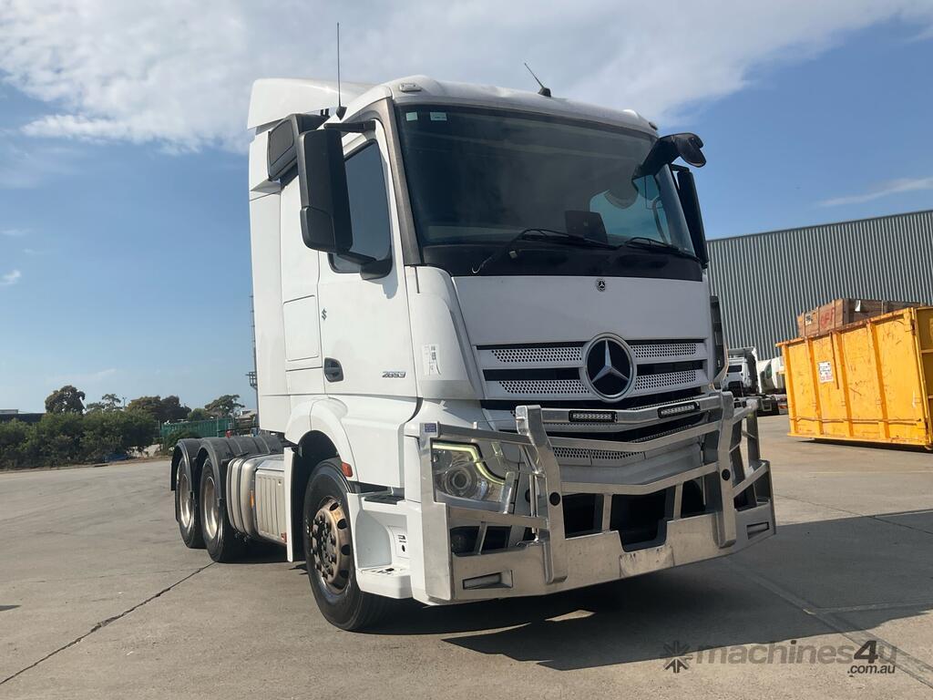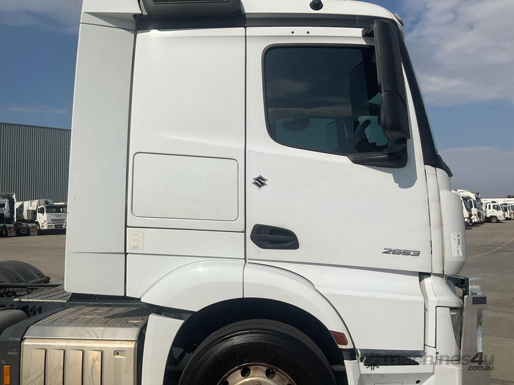 CP: 06/2021,Mercedes Benz,Actros 2653,Prime Mover,Automatic,Air Bag Suspension,6 Cyl,Diesel,1049351 (Kms. Showing on Odometer),Hourmeter not visible,Colour: White,Unregistered,VIN: W1T9689,Key No: 4,GVM: 26000,GCM: 70000,Sold with No Plates,Key No: 4
