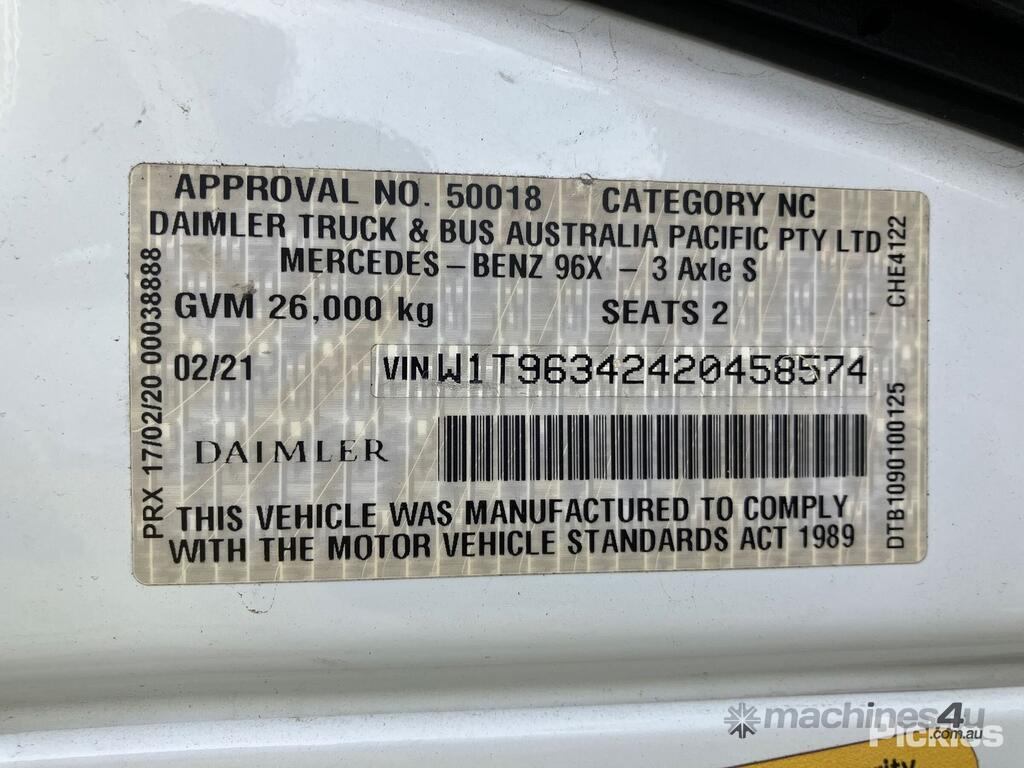 CP: 02/2021,Mercedes Benz,Actros 2653,Prime Mover,Automatic,Diesel,Odometer not visible,Hourmeter not visible,Colour: White,Rego. No: NP(AVY856), Unregistered VIC,VIN: W1T8574,GVM: 26000,Sold with No Plates,WOVR Status: WOVR N/A,Incident Type: Impact
