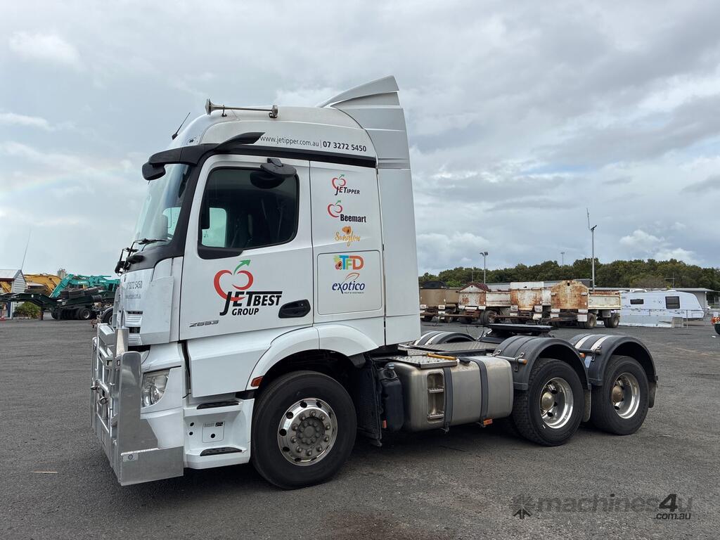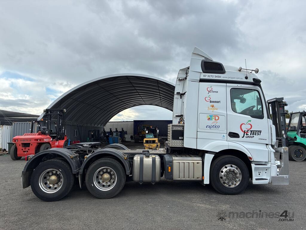CP: 06/2021,Mercedes Benz,Actros 2653,Prime Mover,Automatic,Airbag,6 Cyl,Diesel,582540 (Kms. Showing on Odometer),Hourmeter not visible,Colour: White,Rego. No: XQ37RW NAT,VIN: W1T9045,Key No: 341,GVM: 26000,GCM: 70000,Sold with No Plates,Key No: 341