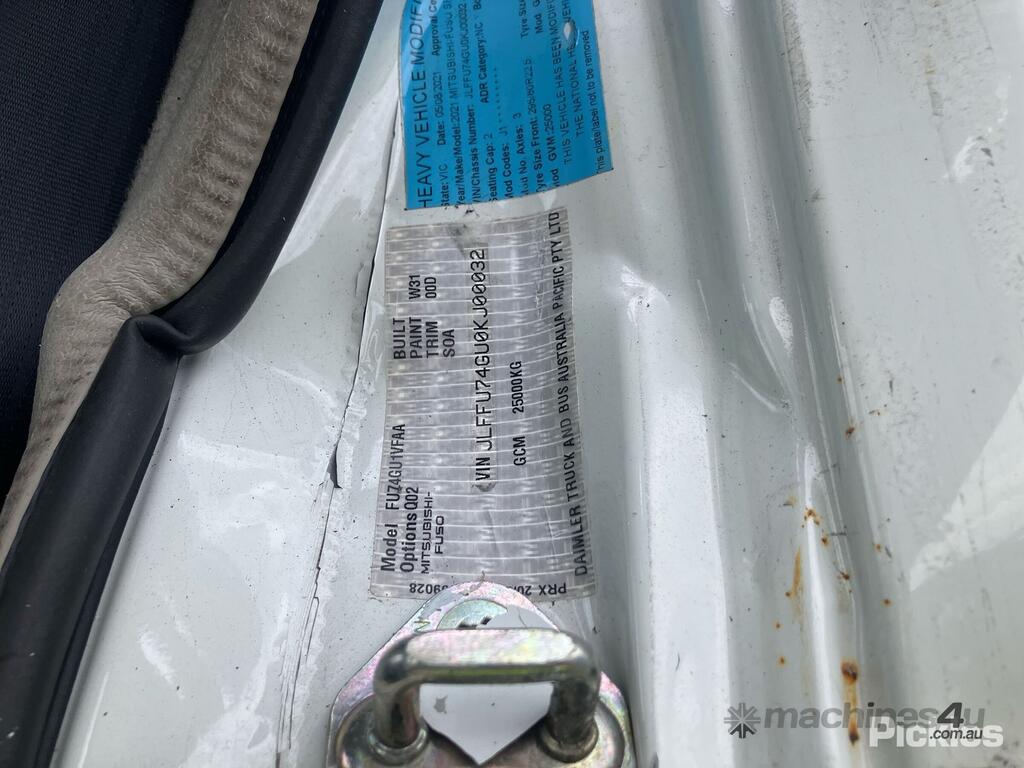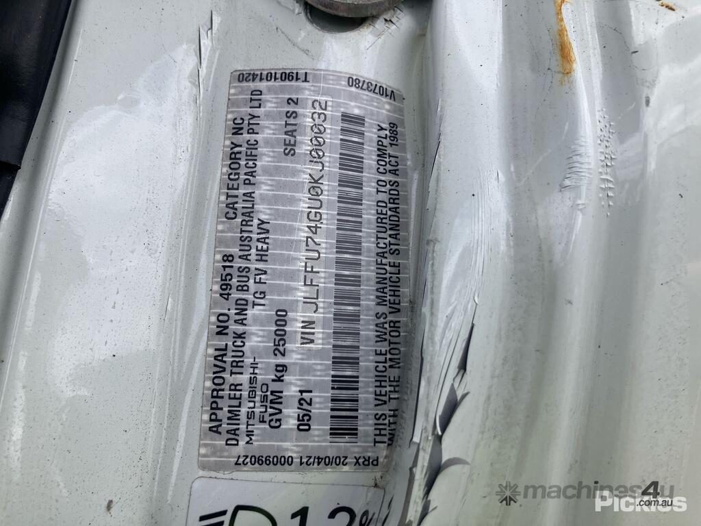 CP: 05/2021,Mitsubishi,FUSO,Curtainsider,Automatic,Airbag,6 Cyl,Diesel,Odometer not visible,Hourmeter not visible,Colour: White,Rego. No: NP(XB69TI), Unregistered QLD,VIN: JLFFU74GU0KJ00032,GVM: 25000,GCM: 25000,Sold with No Plates,WOVR Status: WOVR N/A,Incident Type: Impact