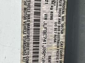 CP: 05/2021,Mitsubishi,Rosa,Bus,Automatic,Spring Suspension,4 Cyl,Diesel,172781 (Kms. Showing on Odometer),Hourmeter not visible,Colour: White,Rego. No: NP(XQ12TL), Unregistered NAT,VIN: JLFBE741J0RM10070,Key No: 331E,Length: 7.9 m,GVM: 6285,GCM: 7900,Sold with No Plates,Key No: 331E