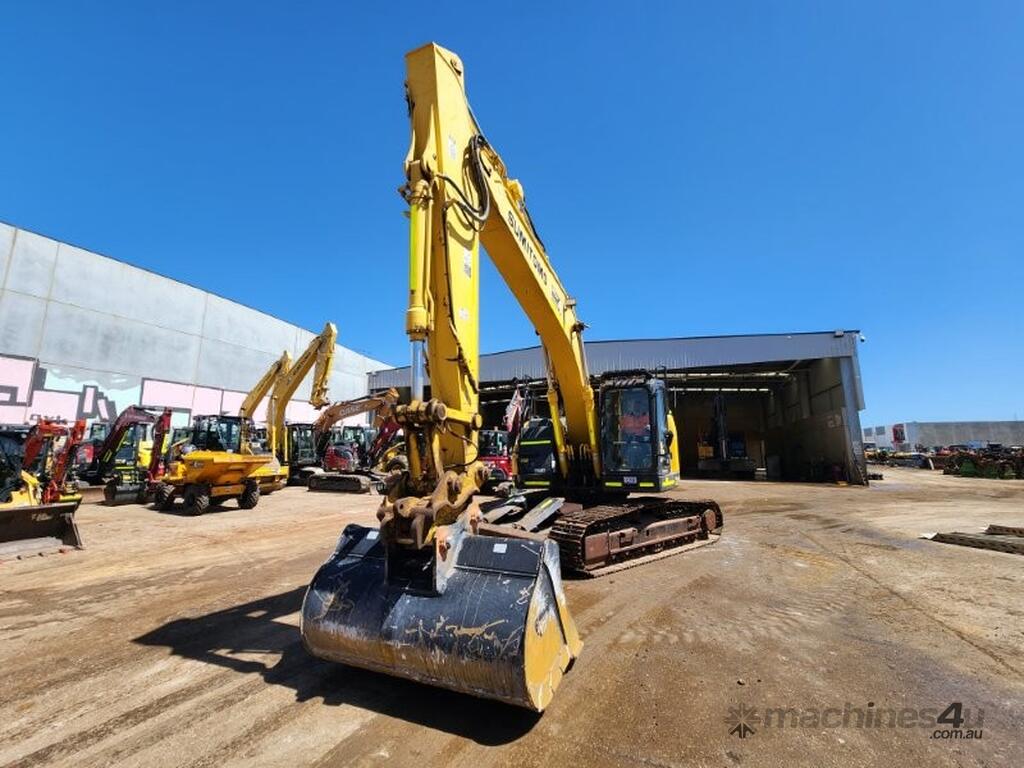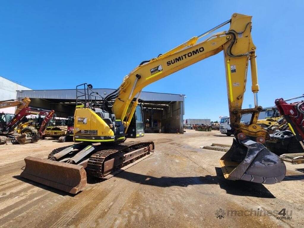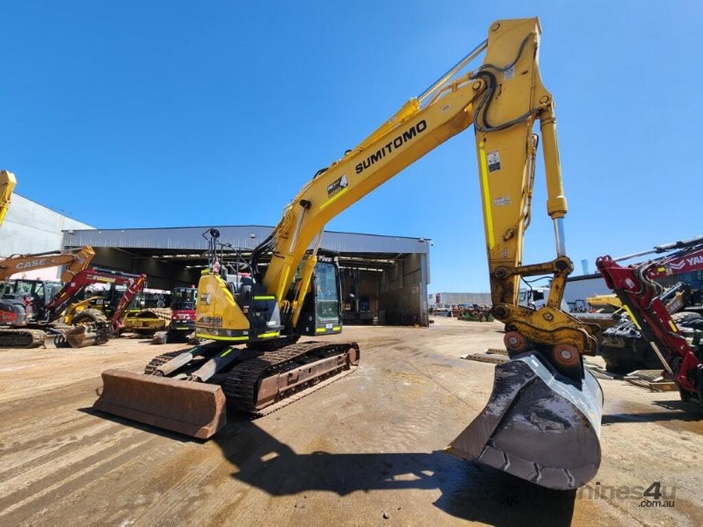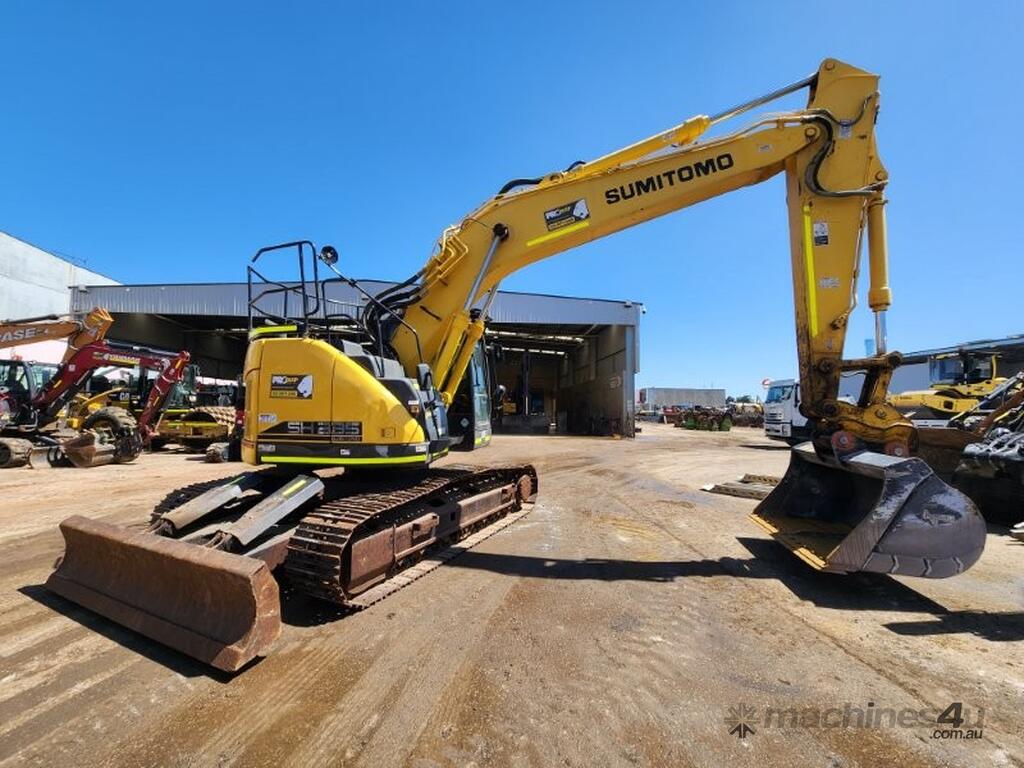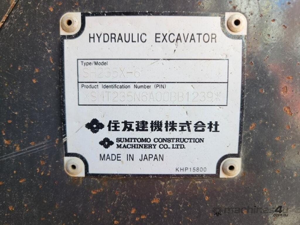 USED 2021 SUMITOMO SH235X-6 (E310) CURRENT MODEL 25T EXCAVATOR WITH REDUCED RADIUS TAIL, LOW 3200 HRS, DOZER BLADE, STEEL TRACKS, HYDRAULIC HITCH, FULL A/C CABIN WITH ROPS, TWO WAY FLOW AUXILIARY HYDRAULICS, REAR VIEW CAMERA, SAFETY HANDRAILS, CHECK VALVES, UHF RADIO, E-STOPS, FULL CIVIL SPEC, GP AND MUD BUCKET.