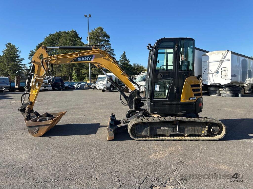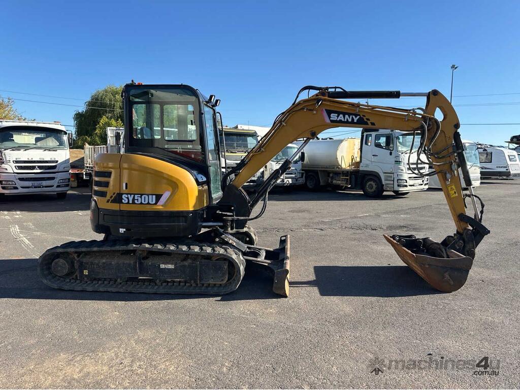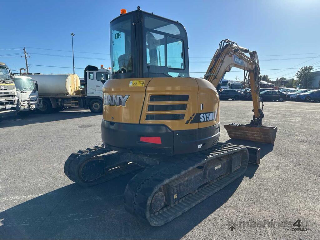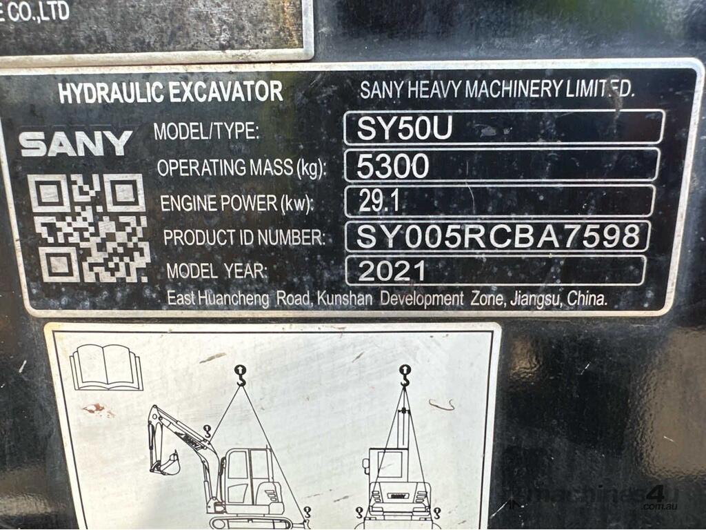 CP: CIRCA 2021,Sany,SY50U,Excavator (Rubber Tracked),Engine #: 89820,4 Cyl,Diesel,Odometer not visible,2822 (Hrs. Showing on Hour meter),Colour: Yellow,Unregistered,Serial No: SY005RCBA7598,Sold with No Plates,Key No: 50