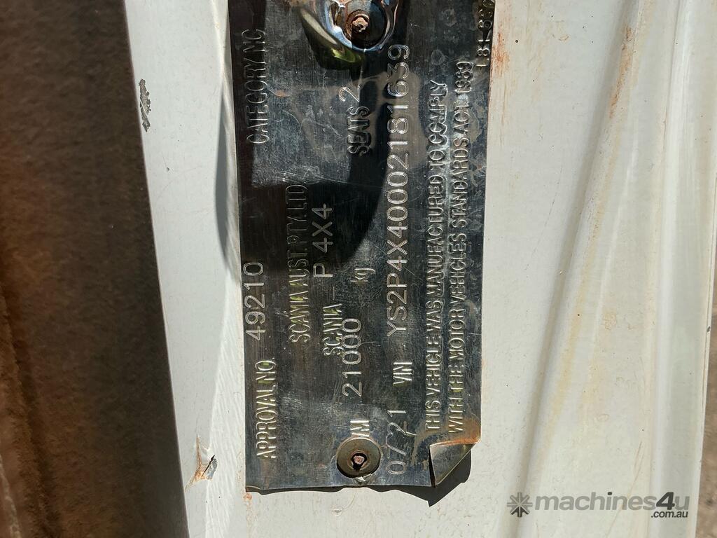 CP: 07/2021,Scania,P280,Crew Cab Table Top,Automatic,Leaf Spring Suspension,Diesel Turbo,61614 (Kms. Showing on Odometer),5523 (Hrs. Showing on Hour meter),Colour: White,Rego. No: NP(181639), Unregistered WA,VIN: YS2P4X9,Key No: 166,GVM: 21000,GCM: 45000,Sold with No Plates,Key No: 166