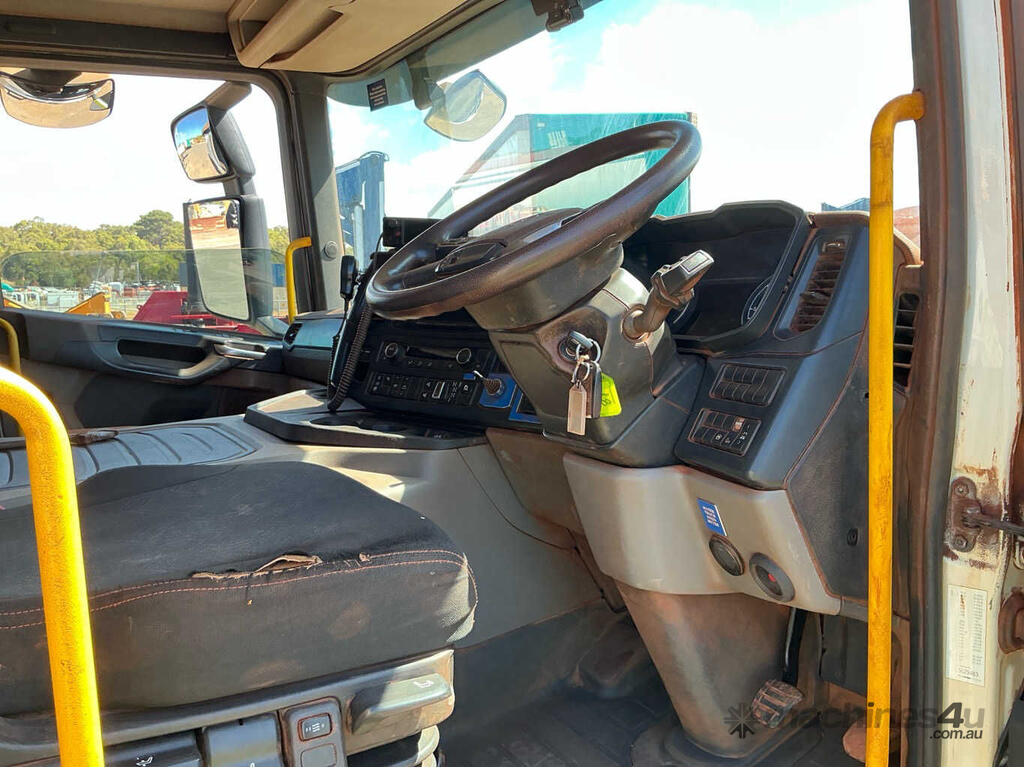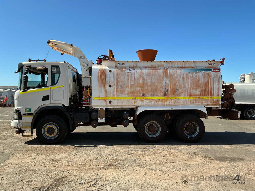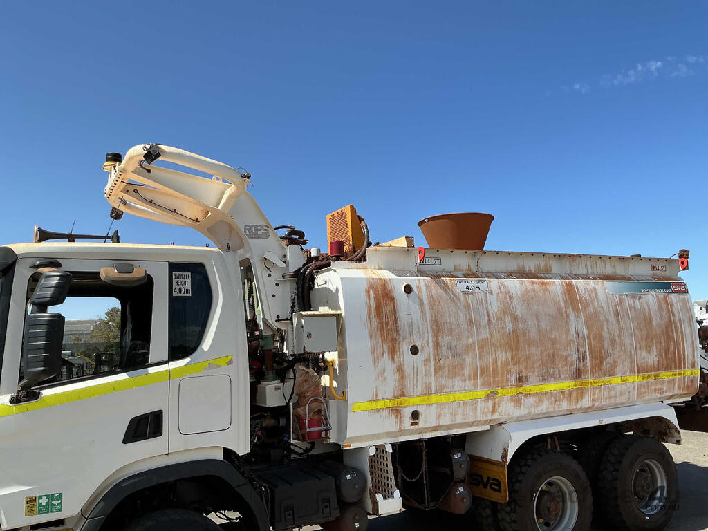 CP: 09/2021,Scania,P410 XT,Service Body Day Cab,Automatic,Leaf Spring Suspension ,6 Cyl,Diesel Turbo,301252 (Kms. Showing on Odometer),15560 (Hrs. Showing on Hour meter),Colour: White,Rego. No: NP(629483), Unregistered WA,VIN: YS2P6X3,Key No: 81,Length: 8.55 m,GVM: 35300,GCM: 50000,Sold with No Plates,Key No: 81