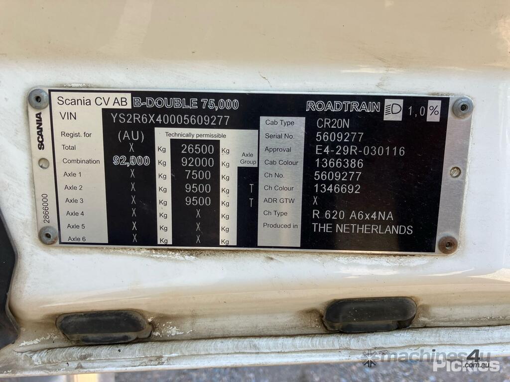 CP: 03/2021,Scania,R620,6x4 Prime Mover,Automatic,airbags,8 Cyl,Diesel,Odometer not visible,Hourmeter not visible,Colour: White,Rego. No: NP(XQ96SO), Unregistered QLD,VIN: YS2R6X7,GVM: 25900,GCM: 92000,Sold with No Plates,WOVR Status: Repairable Write-Off,Incident Type: Impact