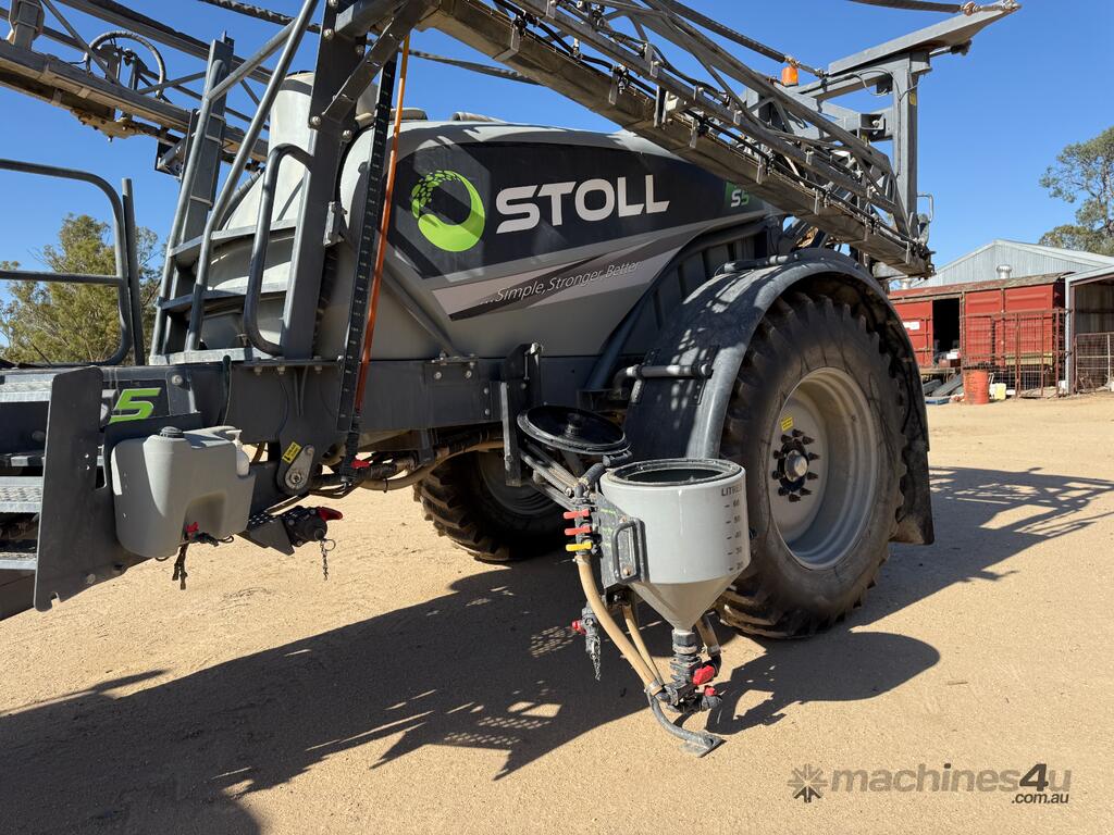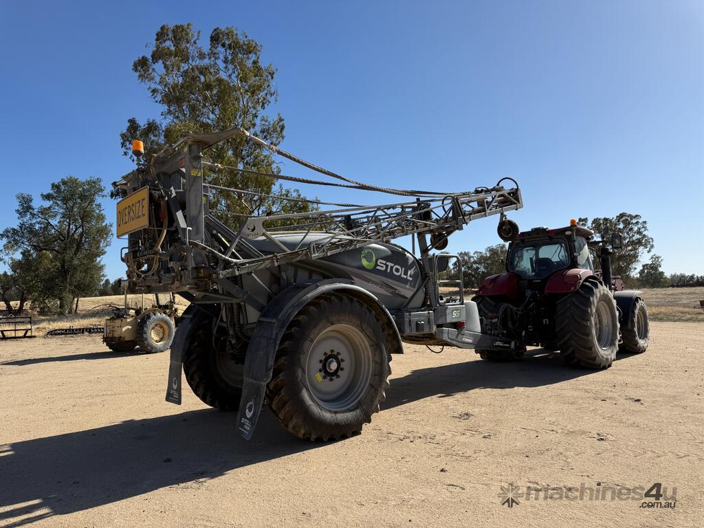 Stoll S5 24m Boomspray, Hydraulic driven Hypro pump (new in 2024), Air bags, HZS L flush tank, 60L drop-down induction hopper with high flow agitator nozzle, drum rinse nozzle & hopper flush nozzle, Fence line nozzles (one side needs replacing), Tank rinse nozzles, High capacity suction filter, followed by 1½ self-cleaning filter & a ½ secondary pressure filter, Heavy duty hydraulic boom, featuring hydraulic parallelogram lift with nitrogen accumulator suspension & hydraulic fold together with individual hydraulic wing tilt and hydraulic bi-fold, meaning that the outer wing can be folded to spray at a narrow width, 5 spray sections, ISOBUS ready with Raven spray system, PTO, 48 × AI XR 2.5 nozzles, Choice of fill up using Hypro pump or use external pump, Air hose connection to blow down work area & clean nozzles, Hose connection to wash down sprayer & clean work area, Heavy duty air compressor in dust proof box. Overrall great unit in very good condition, selling due to upgrading to larger unit. Model: S524, Serial No: S, Man Date: 02/2021