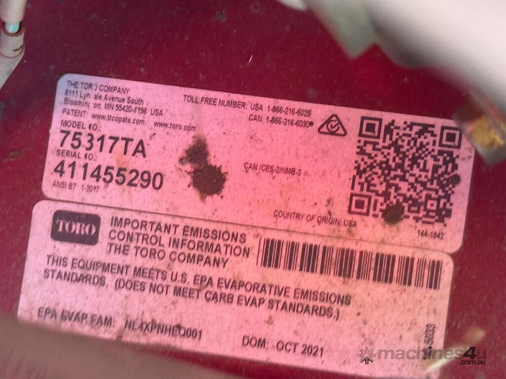 CP: CIRCA 2021,Toro,Titan MR 5400,Zero Turn Ride On Mower,2 Cyl,Petrol,Odometer not visible,709 (Hrs. Showing on Hour meter),Colour: Red,Unregistered,Serial No: ,Sold with No Plates