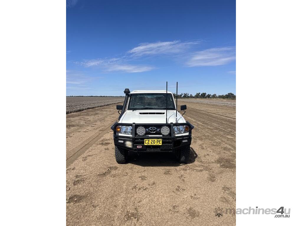 2021 Toyota Landcruiser GXL Dual Cab. 138,695kms, ARB steel bullbar with side rails and steps, LED driving lights, Michelle Steel Tray with dog boxes and water storage, LED worklights, towbar, multimedia unit, BF Goodrich AT tyres, GME UHF with aerial. Sold unregistered. Located Burren Junction NSW.