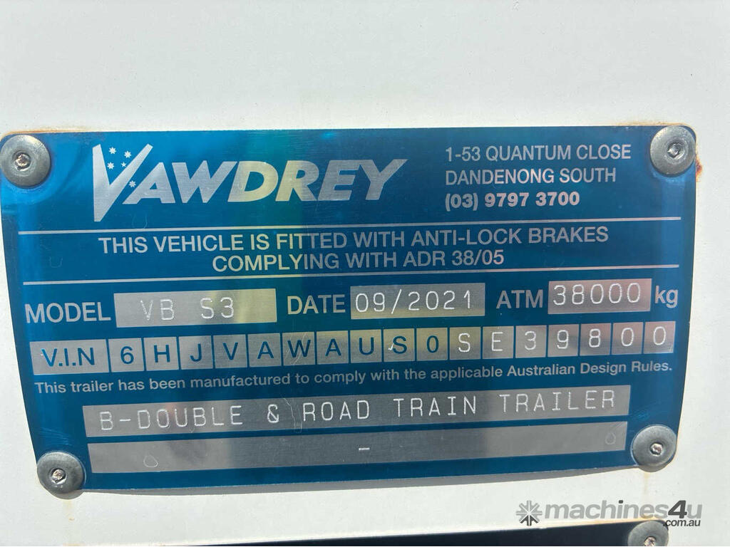 CP: 09/2021,Vawdrey,VB S3,Tri Axle Drop Deck Curtainsider A Trailer,1795 (Kms. Showing on Hubometer),Colour: Silver,Unregistered,VIN: 6HJVAWAUS0SE39800,Sold with No Plates