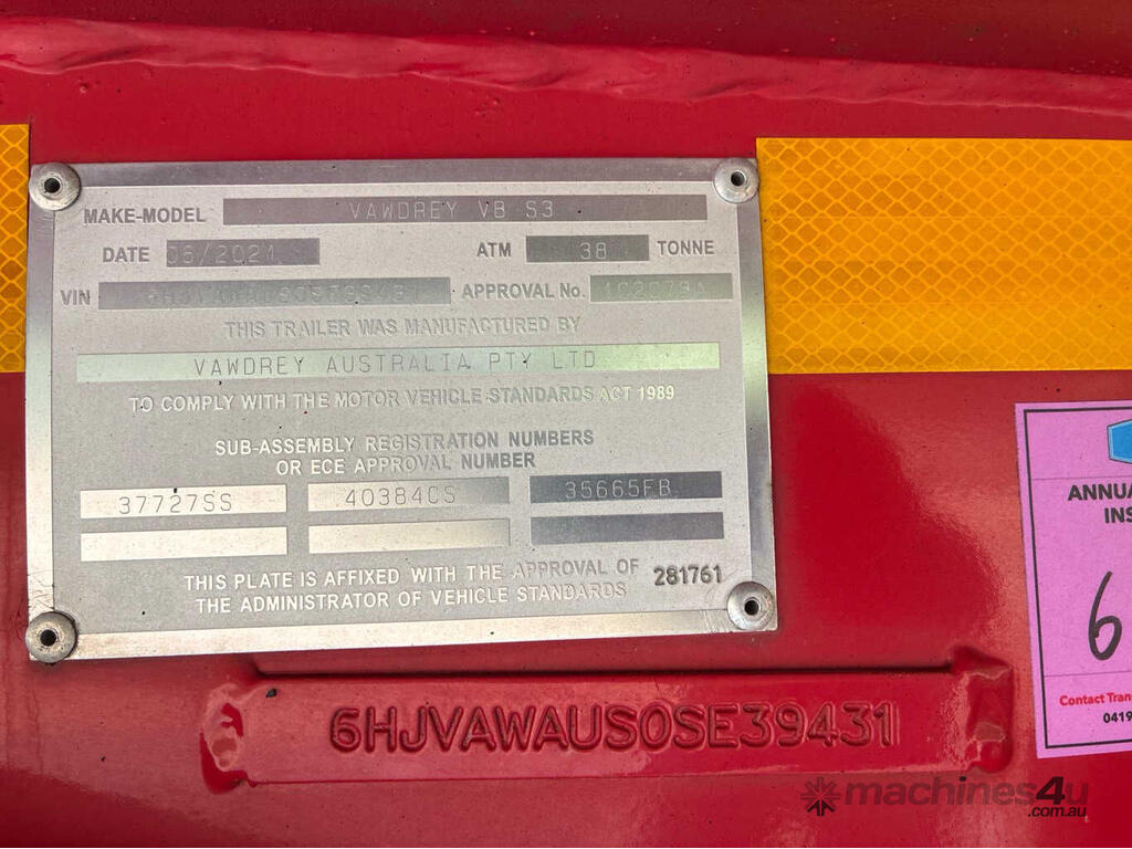 CP: 06/2021,Vawdrey,VBS3,Tri Axle Roll Back Pantech A Trailer,200702 (Kms. Showing on Hubometer),Colour: Red,Unregistered,VIN: 6HJVAWAUS0SE39431,Sold with No Plates