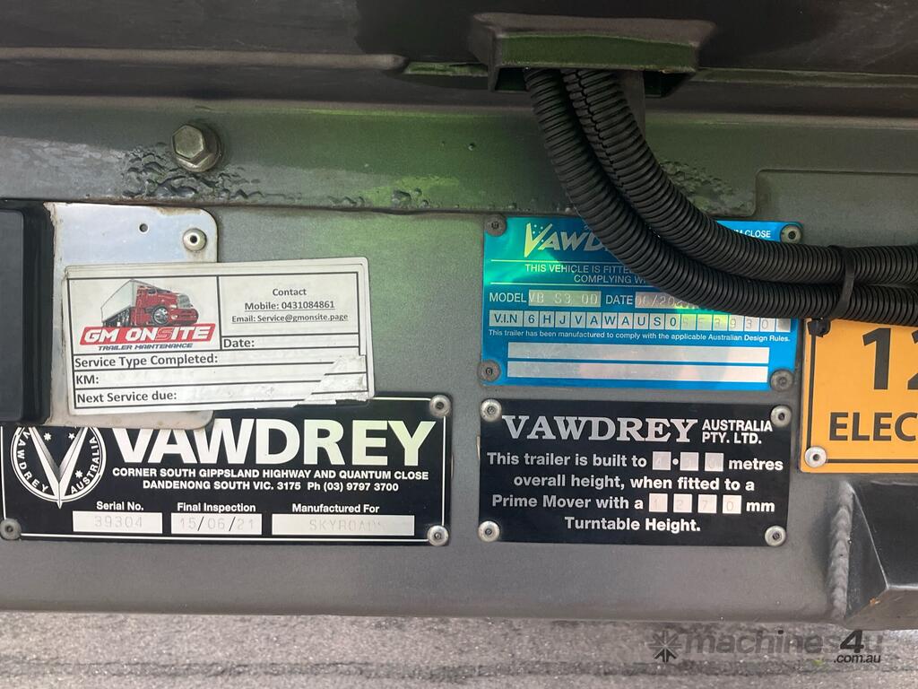 CP: 06/2021,Vawdrey,VBS30D,Tri Axle Drop Deck Refrigerated Curtainside Trailer,0 (undefined),Colour: Grey,Rego. No: NP(YV01NQ), Unregistered VIC,VIN: 6HJVAWAUS0SE39304,Sold with No Plates