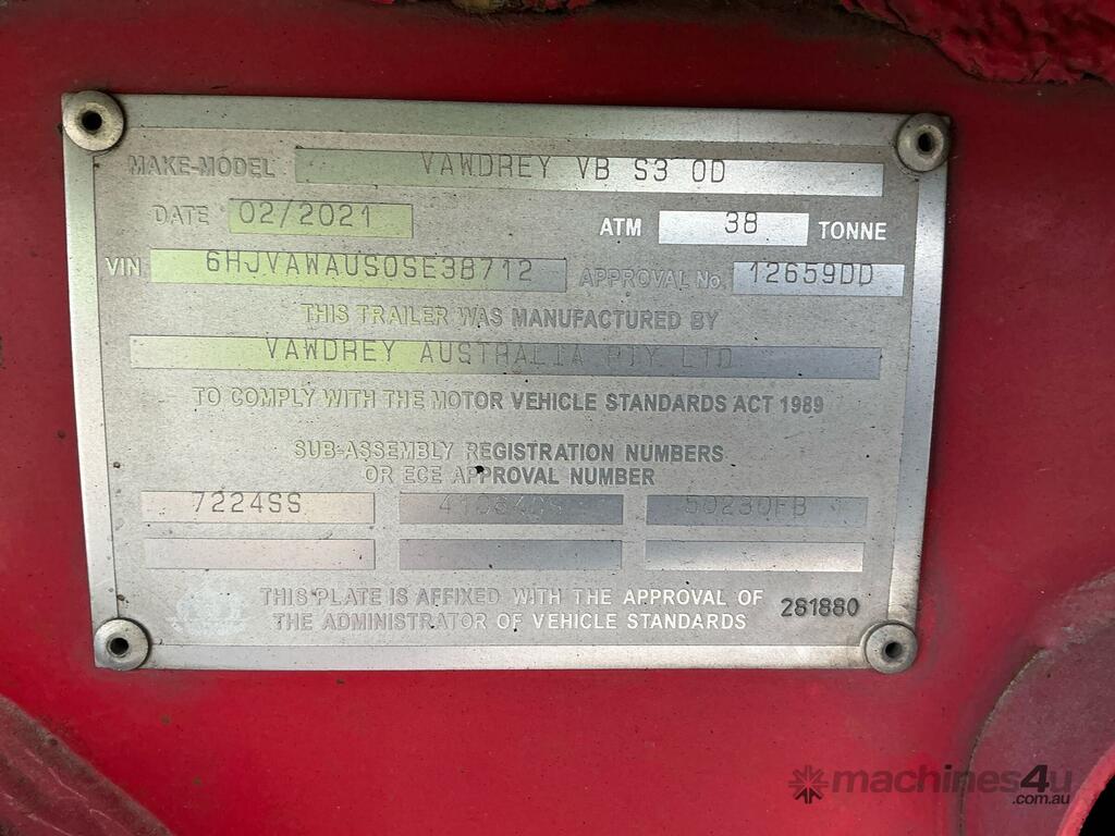 CP: 02/2021,Vawdrey,VBS30D,Tri Axle Drop Deck Refrigerated Curtainside Trailer,6275 (Kms. Showing on Hubometer),Colour: Grey,Unregistered,VIN: 6HJVAWAUS0SE38712,Sold with No Plates