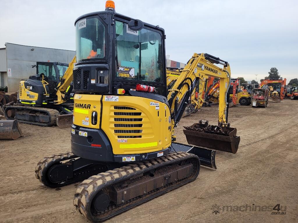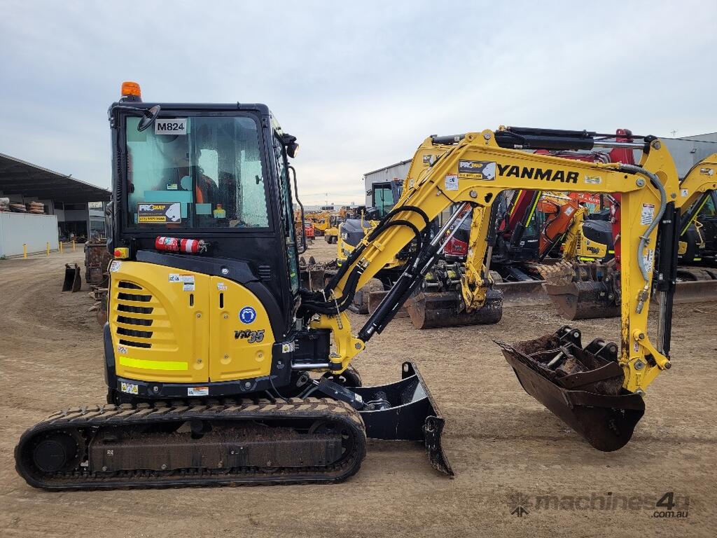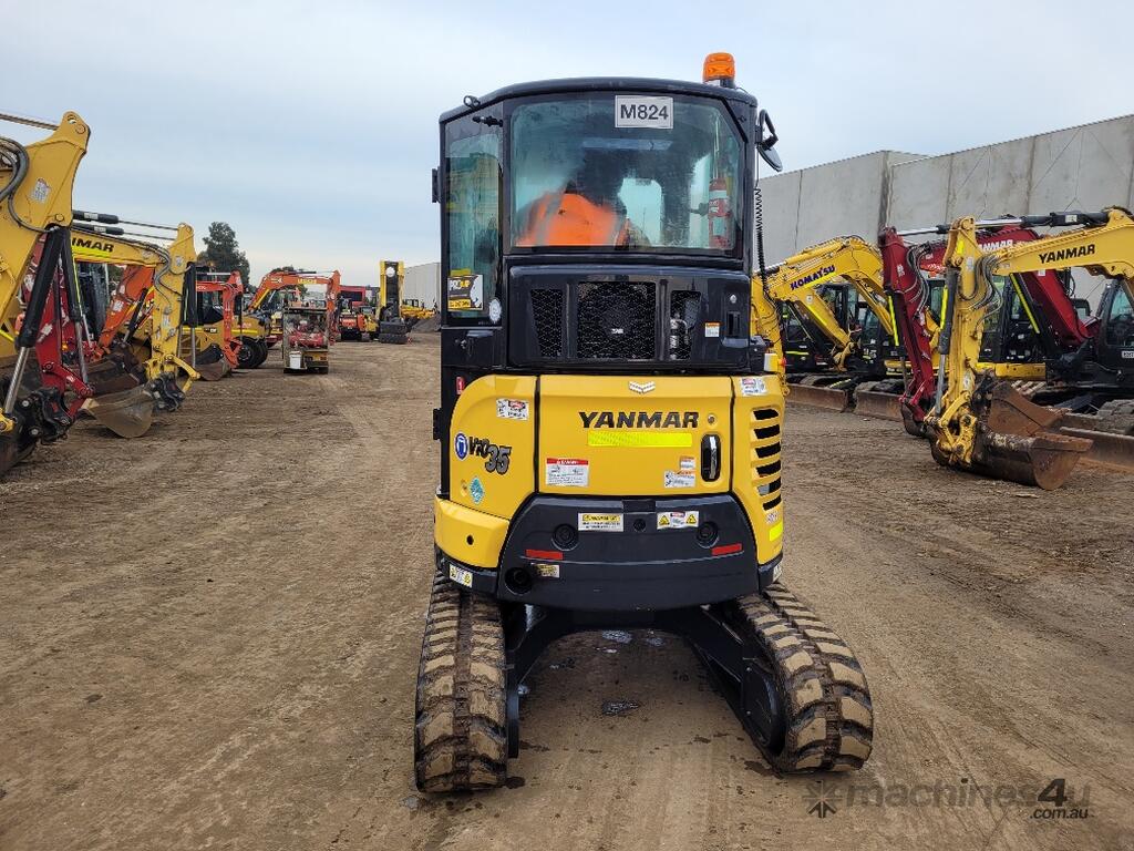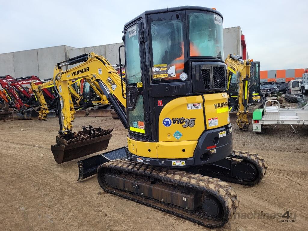 YANMAR VIO35-6 ZERO TAIL 3.7T EXCAVATOR AUSTRALIAN DELIVERED IN JAN 2022 WITH FULL A/C CABIN, ROPS, 500 HOURS, 2 SPEED, RUBBER TRACKS, DOZER BLADE, HYDRAULIC HITCH, PROPORTIONAL CONTROL AUXILIARY HAMMER AND AUGER PIPING, 300 & 450mm DIGGING BUCKETS, MUD BUCKET, E-STOPS, BATTERY ISOLATOR, UHF RADIO, FIRE EXTINGUISHER AND RISK ASSESSMENT. VERY GOOD CONDITION, FULLY SERVICE HISTORY AND READY FOR WORK. BALANCE OF FACTORY WARRANTY APPLIES TO JANUARY 2026. AVAILABLE NOW FOR SALE, RENTAL OR RENT-TO-BUY OPTIONS.
